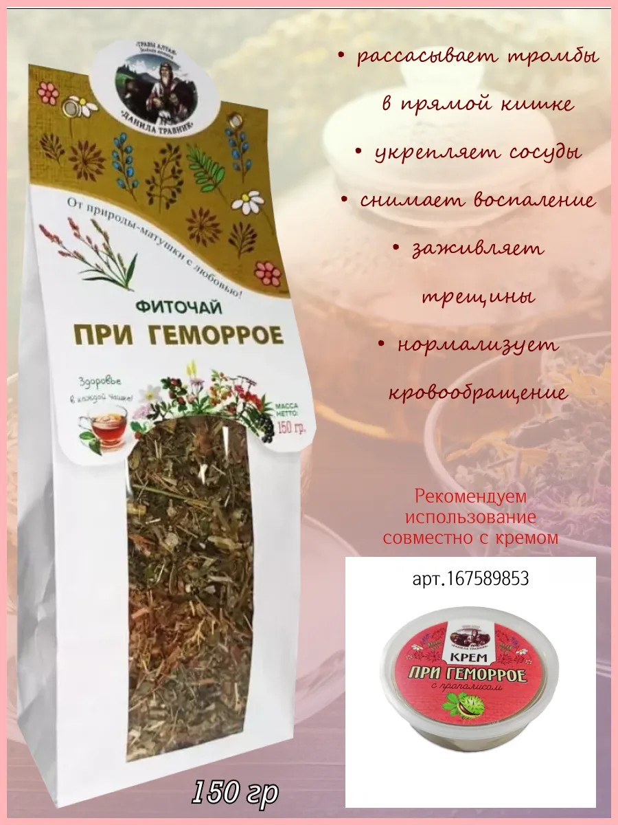 Рассасывает тромбы в прямой кишке, очищает и укрепляет сосуды, снимает воспалительный процесс, нормализует кровообращение, заживляет трещины.