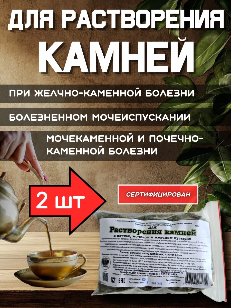 Если вы страдаете от желчнокаменной болезни или хотите предотвратить образование камней в мочевом пузыре, то наш травяной чай станет вашим надежным помощником. Он способствует растворению камней в почках, желчном пузыре и мочевом пузыре, обеспечивая тем самым комфорт и здоровье.
