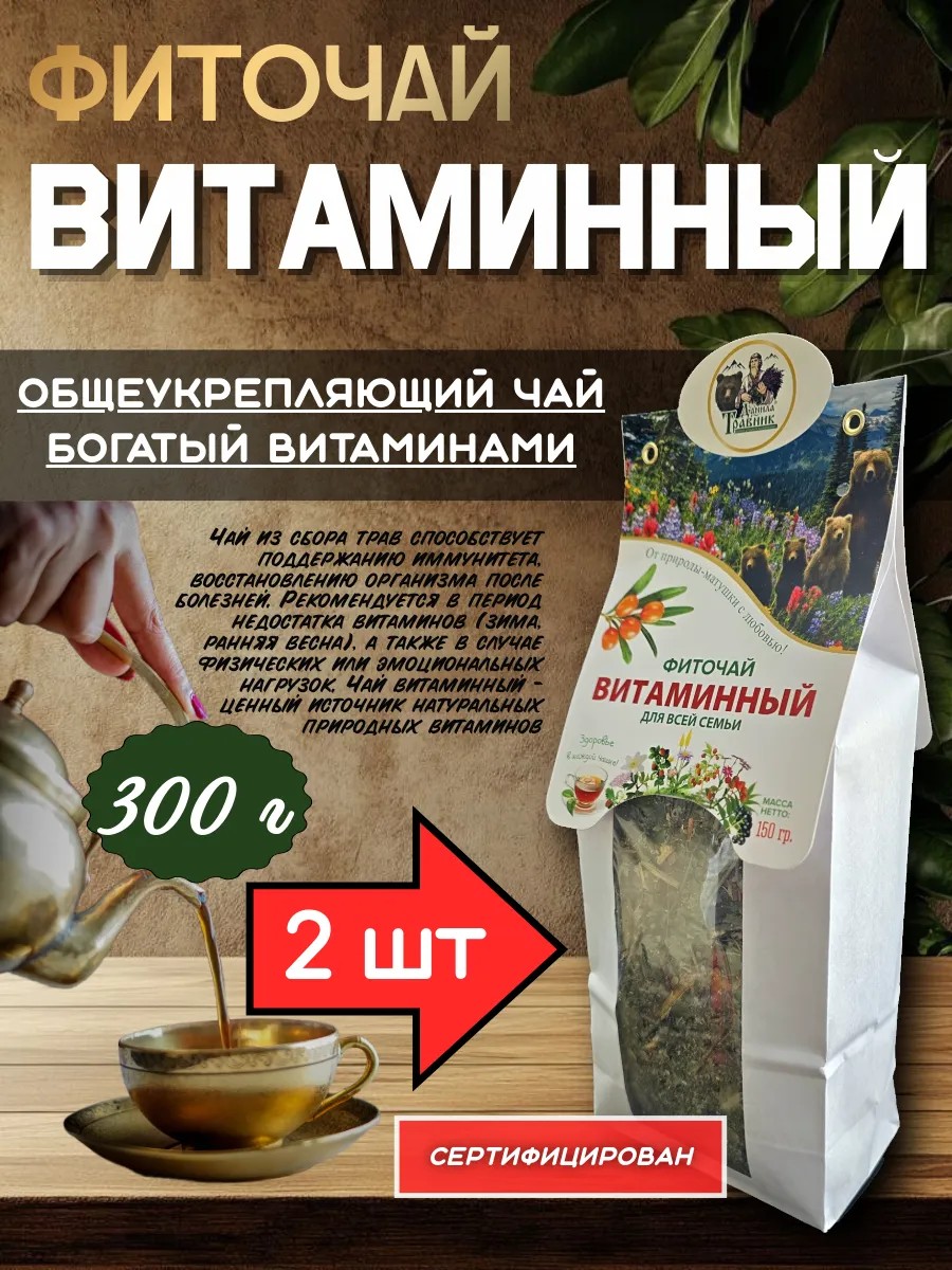 Чай из сбора трав способствует поддержанию иммунитета, восстановлению организма после болезней. Рекомендуется в период недостатка витаминов (зима, ранняя весна), а также в случае физических или эмоциональных нагрузок. Чай витаминный - ценный источник натуральных природных витаминов.