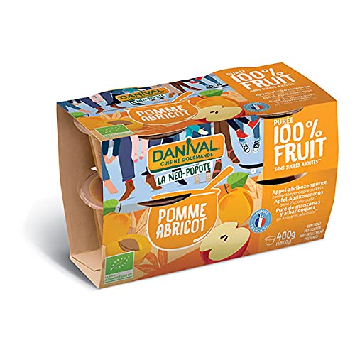 To vary the pleasures and enjoy the multiple benefits of fruits, DANIVAL offers you the recipe for 100 Apple-apricot puree! No added sugar. Capacity: 4 x 100g See the full descriptionOrganic Apple and Apricot Puree 4 x 100g. Danival. Individually packaged compote. Fruit compotes and purees. Organic compotes and desserts. Pour varier les plaisirs et profiter des multiples bienfaits des fruits, DANIVAL vous propose la recette de purée 100 Pommes-abricots! Sans sucres ajoutés. Contenance : 4 x 100g Voir le descriptif completPurée Pommes abricots BIO 4 x 100g. Danival. Compote en pot individuel. Compotes et purées de fruits. Compote et dessert bio.