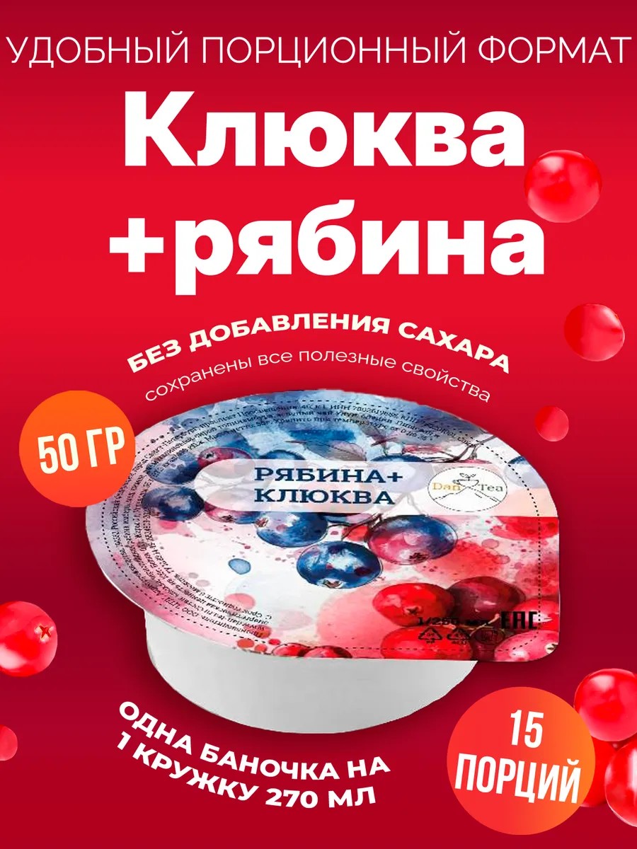 DanTea Чай порционный Без сахара 15 шт по 50 гр Рябиновый с клюквой