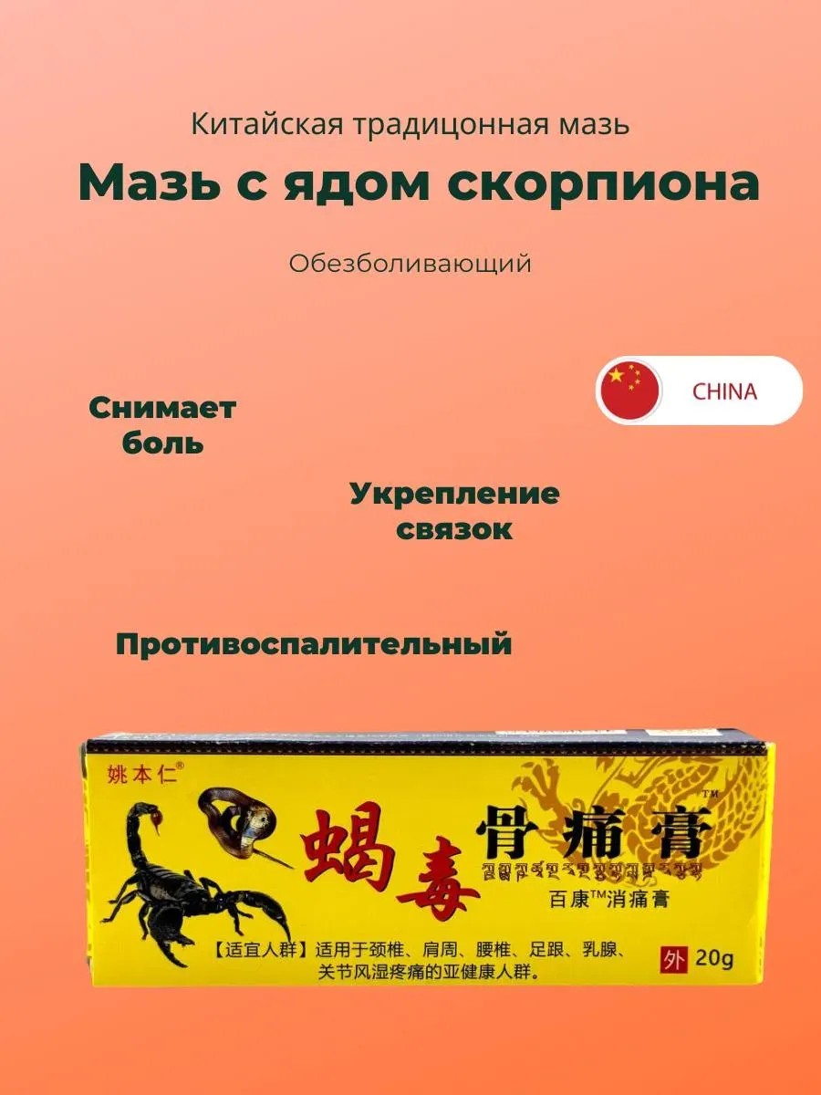 Китайская мазь с ядом скорпиона — обезболивающая и противовоспалительная, при боли в суставах, спине и мышцах