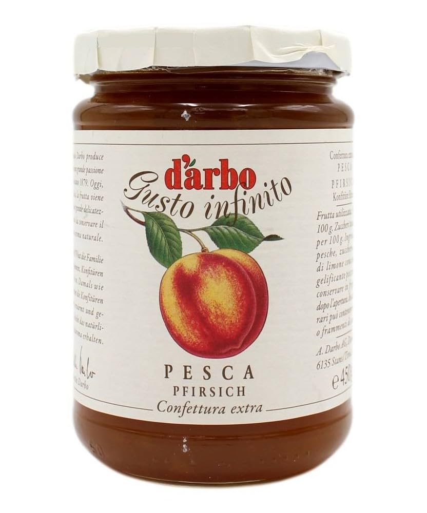 Darbo Fine Jam 450g The secret to good jam is no secret. Darbo's natural jams are among the most popular in Austria. To keep it that way, Darbo offers even more variety for your breakfast table. Only the finest, ripest peaches are used in this new creation with 50 fruit. Thanks to the gentle preparation process, the typical peach flavor is perfectly preserved. Artificial colors and preservatives are already prohibited in our natural jam. Because in Darbo's pure, natural jam, only nature is used. The ingredients in Darbo Naturpurs jams are naturally gluten-free. Pure, natural peach jam is a must-have on any breakfast table or breakfast buffet – enjoy a delicious, pure treat. Contents: 450 g - Region: Tyrol - Brand: Darbo INGREDIENTS Peach, sugar, concentrated lemon juice, pectin (gelling agent).
