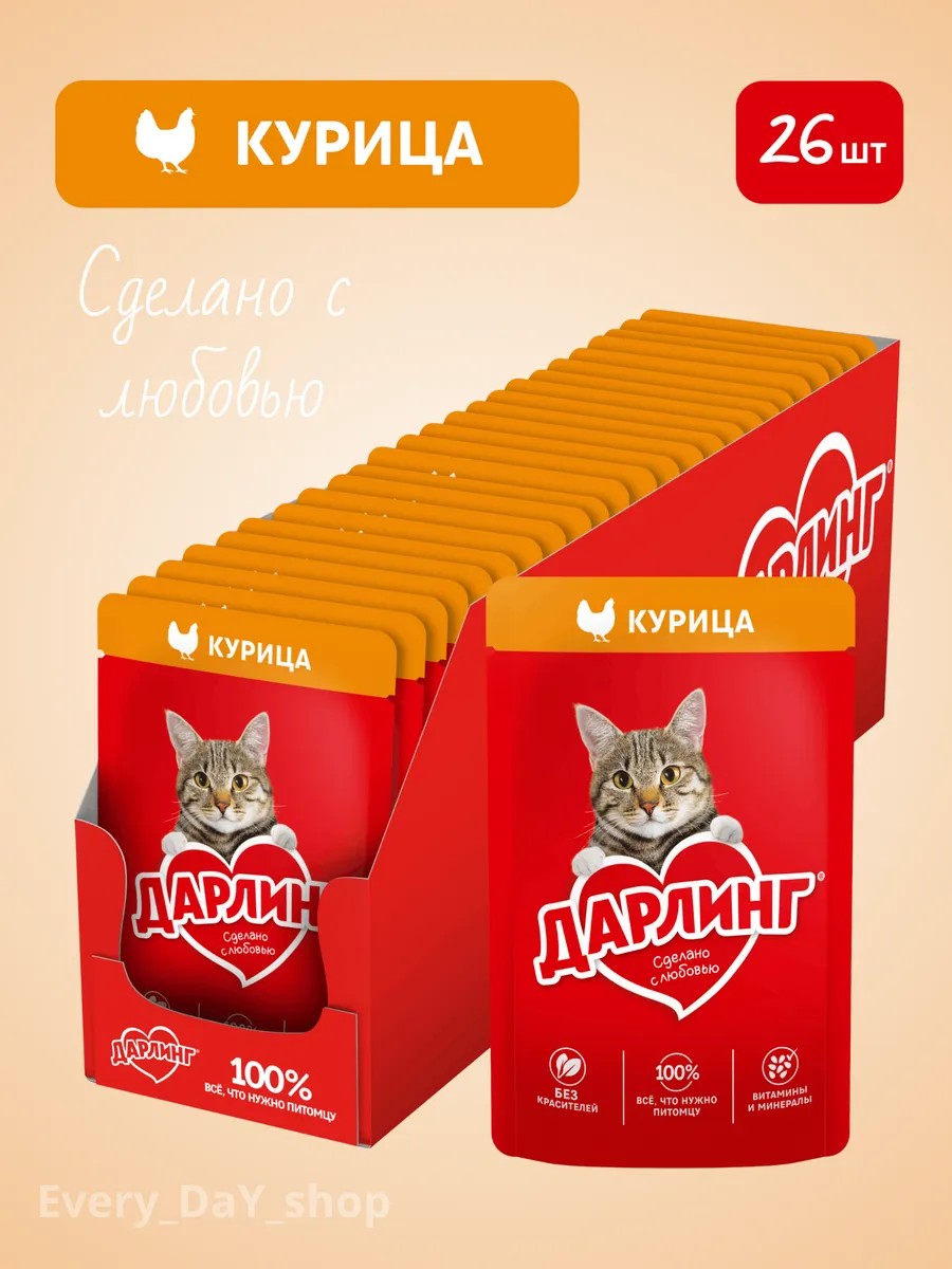 Влажный корм ДАРЛИНГ для взрослых кошек, с курицей в соусе, 75 г х 26 шт.