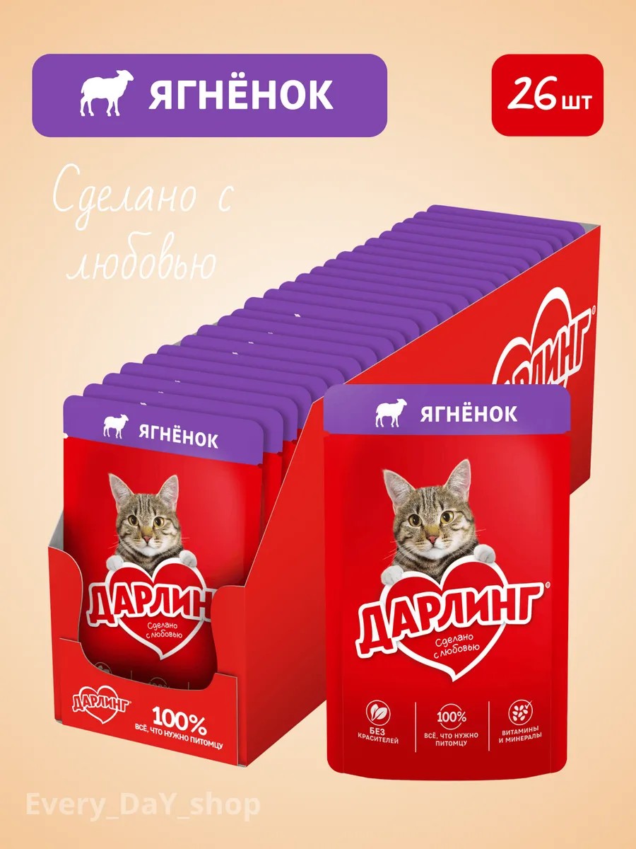 Влажный корм ДАРЛИНГ для взрослых кошек, с ягненком в соусе, 75 г х 26 шт.