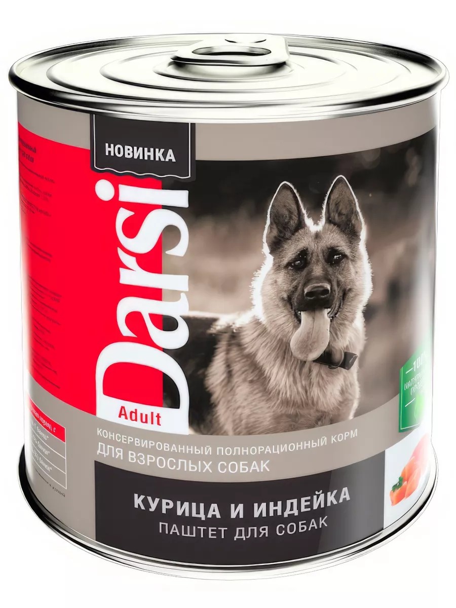 Корм Darsi (паштет) для взрослых собак "Курица и Индейка", 410г 6 шт. Консервы Darsi Курица и индейка для взрослых собак, паштет, 850г/410гКрепкие костиСбалансированное соотношение кальция и фосфора способствует правильному развитию костейУстойчивый иммунитетВитамин Е и природные антиоксиданты повышают защитную функцию организма вашей собаки от неблагоприятного воздействия окружающей средыБлестящая шерсть и здоровая кожаСбалансированное содержание Омега-3 и Омега-6 ненасыщенный жирных кислот обеспечивают здоровую кожу и блестящую мягкую шерстьХорошее пищеварениеВысокоусвояемые питательные вещества и специально подобранная клетчатка способствует правильной работе кишечника.Состав:курица, индейка, говяжьи субпродукты, растительное масло, витаминыПищевая ценность:сырой белок 10,0%, сырой жир 5,0 %, сырая клетчатка 0,2%, сырая зола 3,0%, влажность 80%, кальций 1,1%, фосфор 0,8%Гарантируемые показатели питательной ценности на 1кг:витамин А 150 МЕ, витамин D3 15 МЕ, витамин Е 1,5 мгЭнергетическая ценность в 100 г:85 ккал.