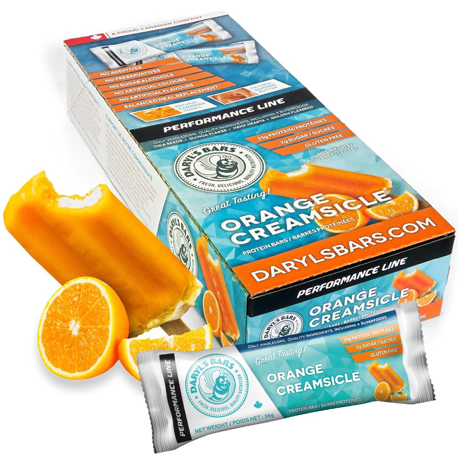 Daryl's Bars Orange Creamsicle On the Go Whey Protein Bars Gluten Free Low Sugar 20gr of Protein Snack Meal Replacement Pack of 1 Orange Creamsicle 12 Count (Pack of 1)