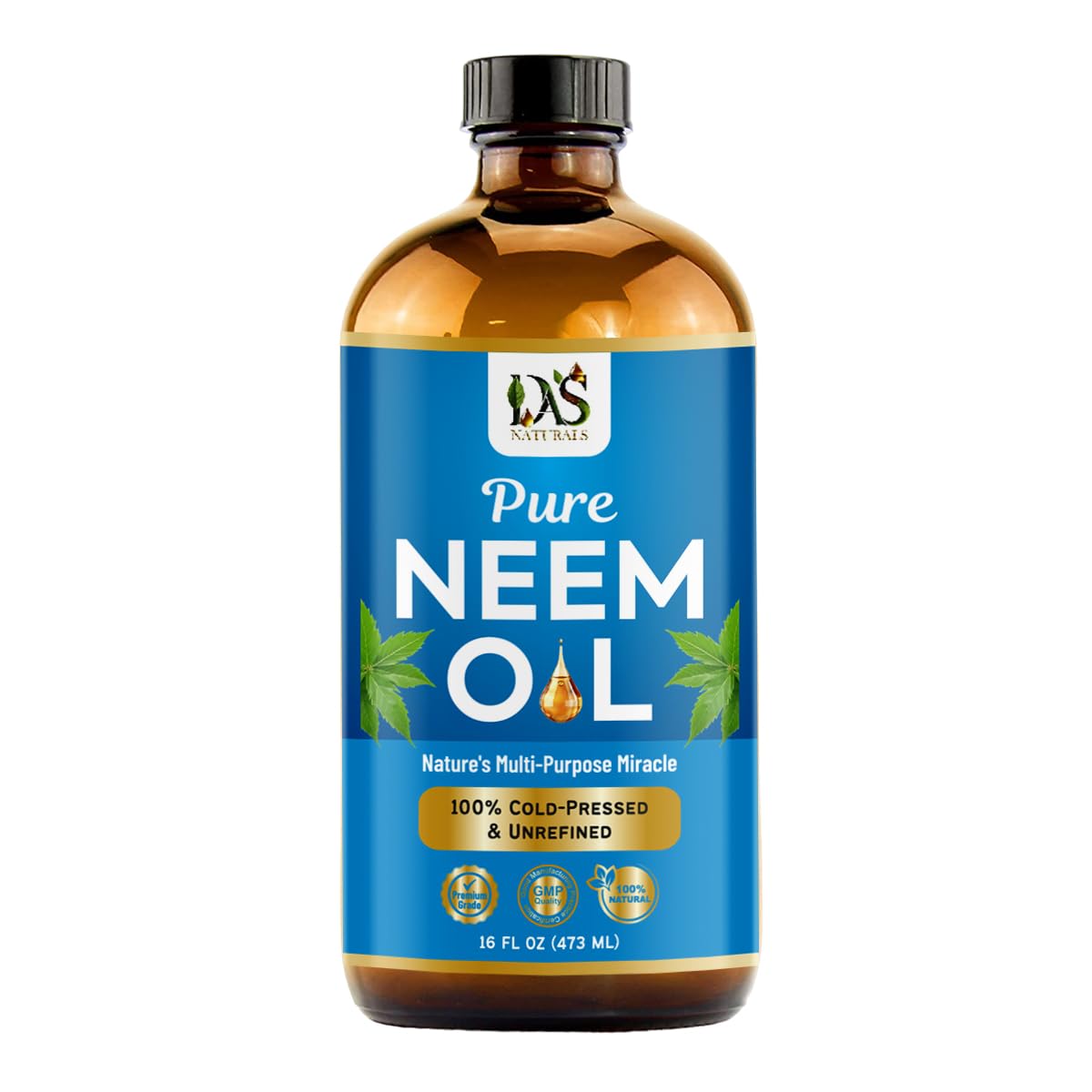 DAS NATURALS Neem Oil | Multipurpose Neem Oil for Hair Skin & Face | 100% Pure Cold-Pressed & Unrefined | Household & Garden Use | 16 fl oz
