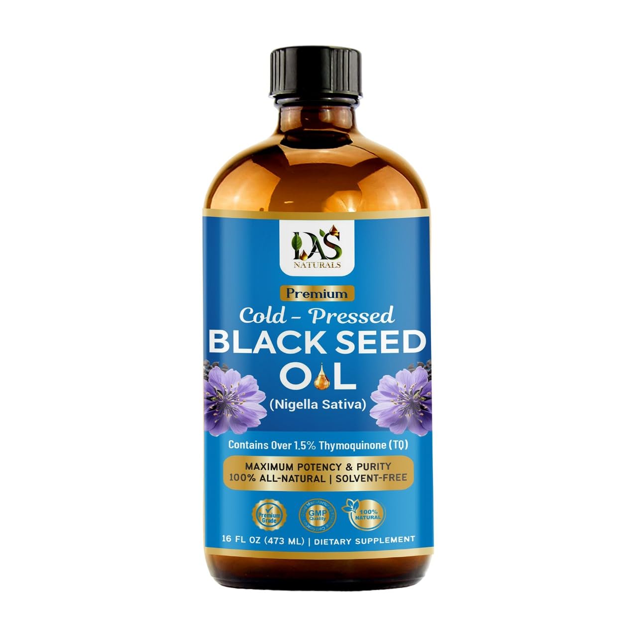 DAS NATURALS Premium Black Seed Oil | Rich in Thymoquinone & Omega 3 6 9 | Cold-Pressed Black Cumin Nigella Sativa | 16 fl oz