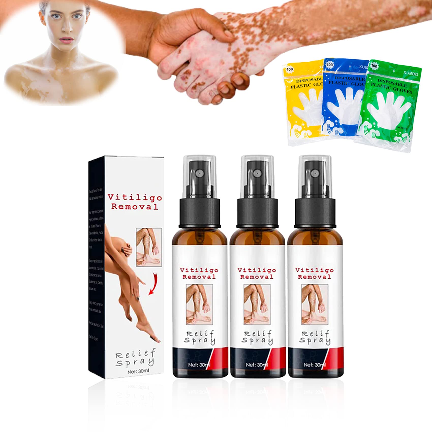 ——————————— Welcome to DASHENRAN, I wish you a happy shopping ——————————— We provide you with a variety of trustworthy and high-quality products, and hope you can buy the products you like. If you have any questions, please feel free to contact us. We will reply you within 24 hours. ========================================================== Vitiligo Removal Relief Spray, Vitiligoremoval Relief Spray, Vitiligo Skin Repair Spray Why choose our Vitiligoremoval Relief Spray? Relief vitiligo skin and reduce the appearance of white spots. Help improve skin pigmentation to fade the skin vitiligo Promote a more even skin tone Made from various natural plant extracts, gentle and effective Help adjust skin pigmentation and restore natural skin tone Slowly repairs the originally lost melanin of the skin. Specification: Name: Vitiligoremoval Relief Spray Net weight: 30 ml Shelf life: 3 years Storage: Cool and Dry Place Package Includes: 1/2/3/5 Pcs X Vitiligoremoval Relief Spray 1/2/3 Pack Disposable Glove(80 Per Pack) Notice: 1.Please allow slight measurement deviation due to manual measurement. 2.Due to different monitors and lighting effects, the actual color of the item may be slightly different from the color shown in the picture.