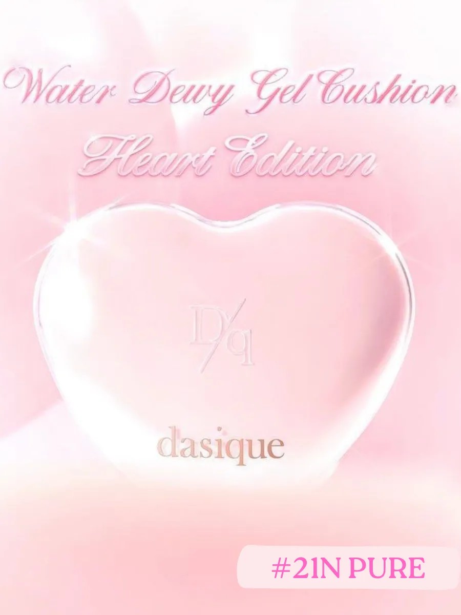WATER DEWY GEL CUSHION/HEART EDITION SPF 50/PA++++ by Dasique (10g) in shade 21N PURE is a lightweight hydrating cushion that provides skin with a natural radiance while protecting it from harmful UV rays.