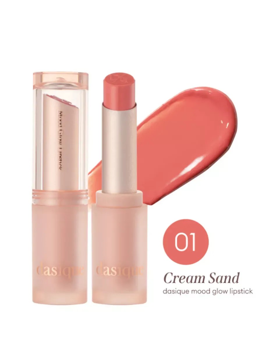 Dasique Mood Glow Lipstick is a glossy lip product that provides rich color and hydration.