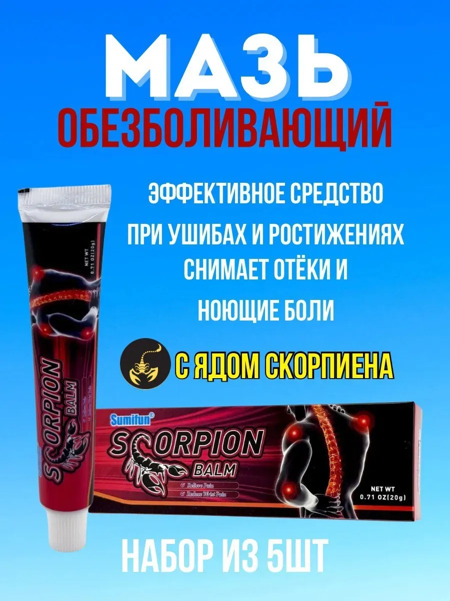 Инновационный препарат на основе натуральных компонентов, разработанный для быстрого снятия боли в суставах, мышцах и позвоночнике. Благодаря уникальному составу с ядом скорпиона, мазь сочетает разогревающий, анальгезирующий и регенерирующий эффекты, помогая восстановить подвижность и комфорт.