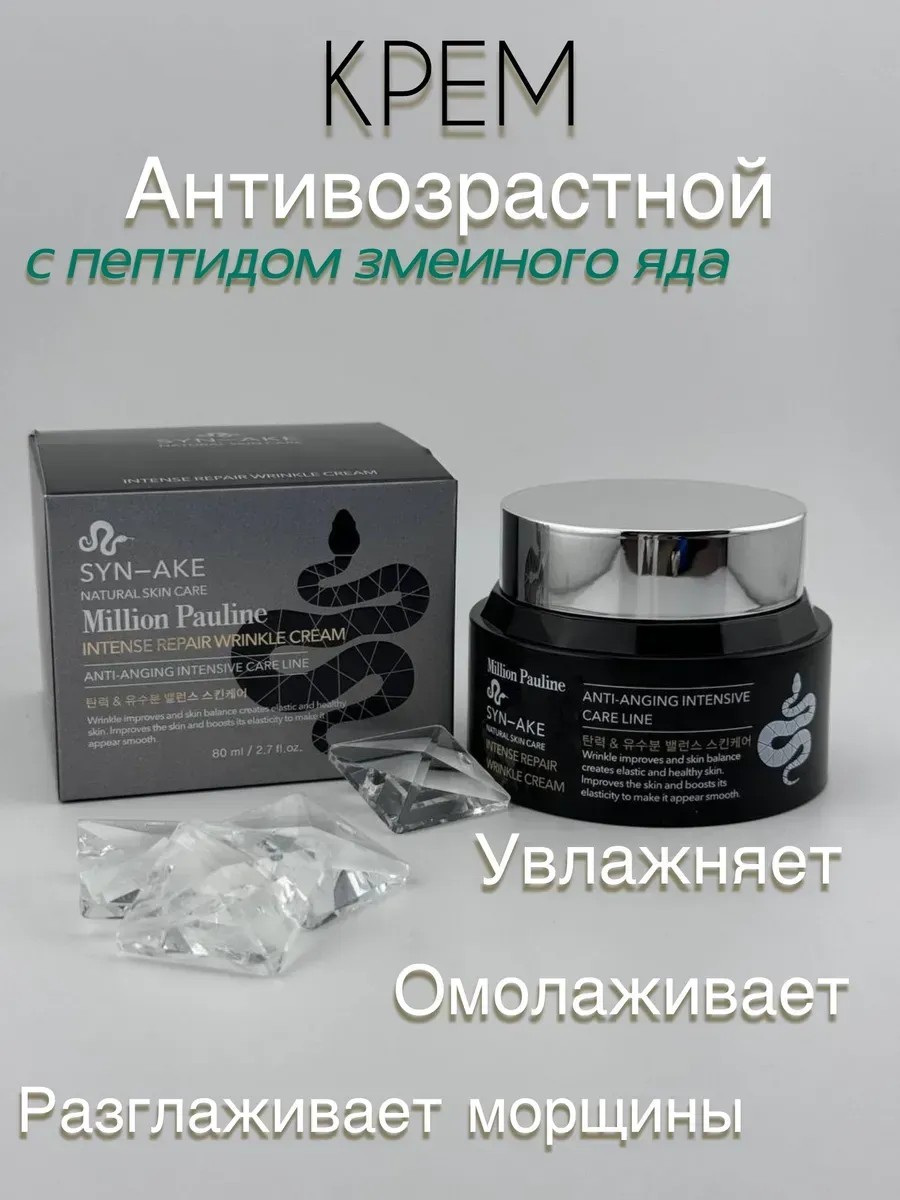 Крем для лица Million Pauline SYN-AKE Intense Repair Wrinkle Cream – инновационное антивозрастное средство с пептидом змеиного яда SYN-AKE. Обеспечивает интенсивное увлажнение, разглаживает морщины, улучшает эластичность кожи и придает ей гладкость. Активные компоненты способствуют восстановлению кожного баланса, делая кожу упругой и сияющей. Идеален для ухода за зрелой кожей. Million Pauline SYN-AKE Intense Repair Wrinkle Cream — это антивозрастной крем премиум-класса, разработанный для интенсивного восстановления кожи и борьбы с морщинами. Основной активный компонент — SYN-AKE, синтетический пептид, имитирующий действие змеиного яда. Он расслабляет мимические мышцы, уменьшая глубину морщин и предотвращая их дальнейшее появление.