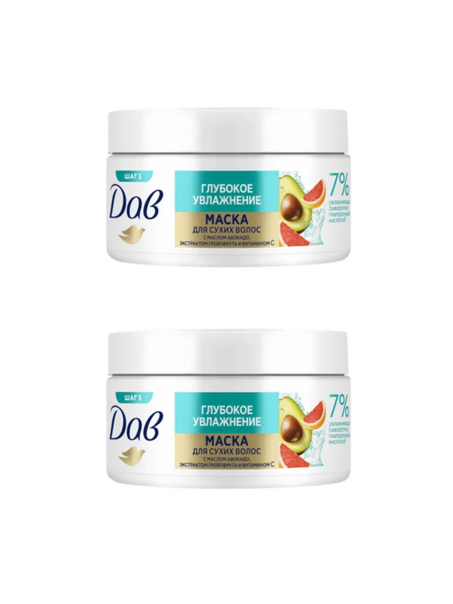 | Полное наименование товара | Дав Маска для волос увлажняющая и питательная с гиалуроновой кислотой и маслом авокадо, 2 штуки по 300 мл. |