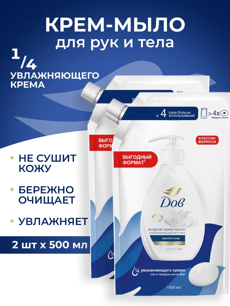 | Полное наименование товара | Жидкое крем мыло для рук Дав в мягкой упаковке Красота и уход 500 мл 2 шт |