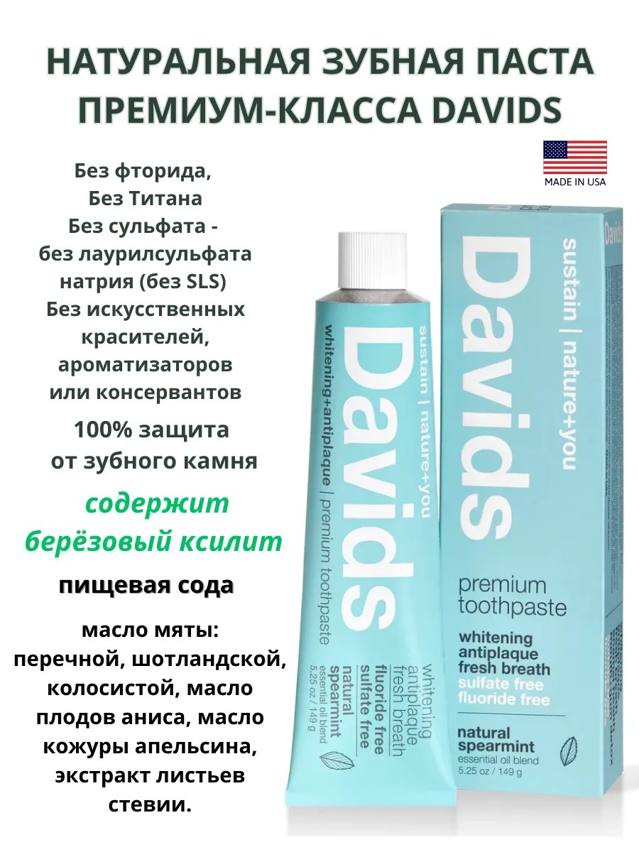 Davids Spearmint is a high-quality, premium toothpaste made with 100% natural ingredients.