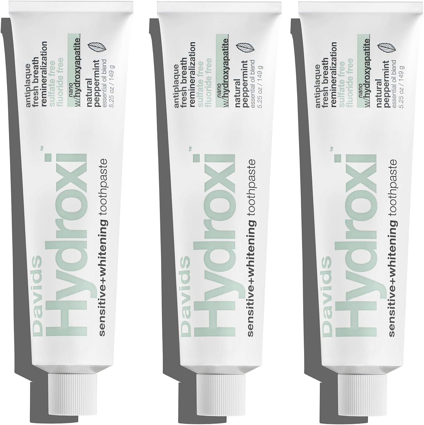 Davids Fluoride Free Nano Hydroxyapatite Toothpaste for Remineralizing Enamel & Sensitive Relief, Whitening, Antiplaque, SLS Free, Natural Peppermint, 5.25oz (3-Pack), Made in USA