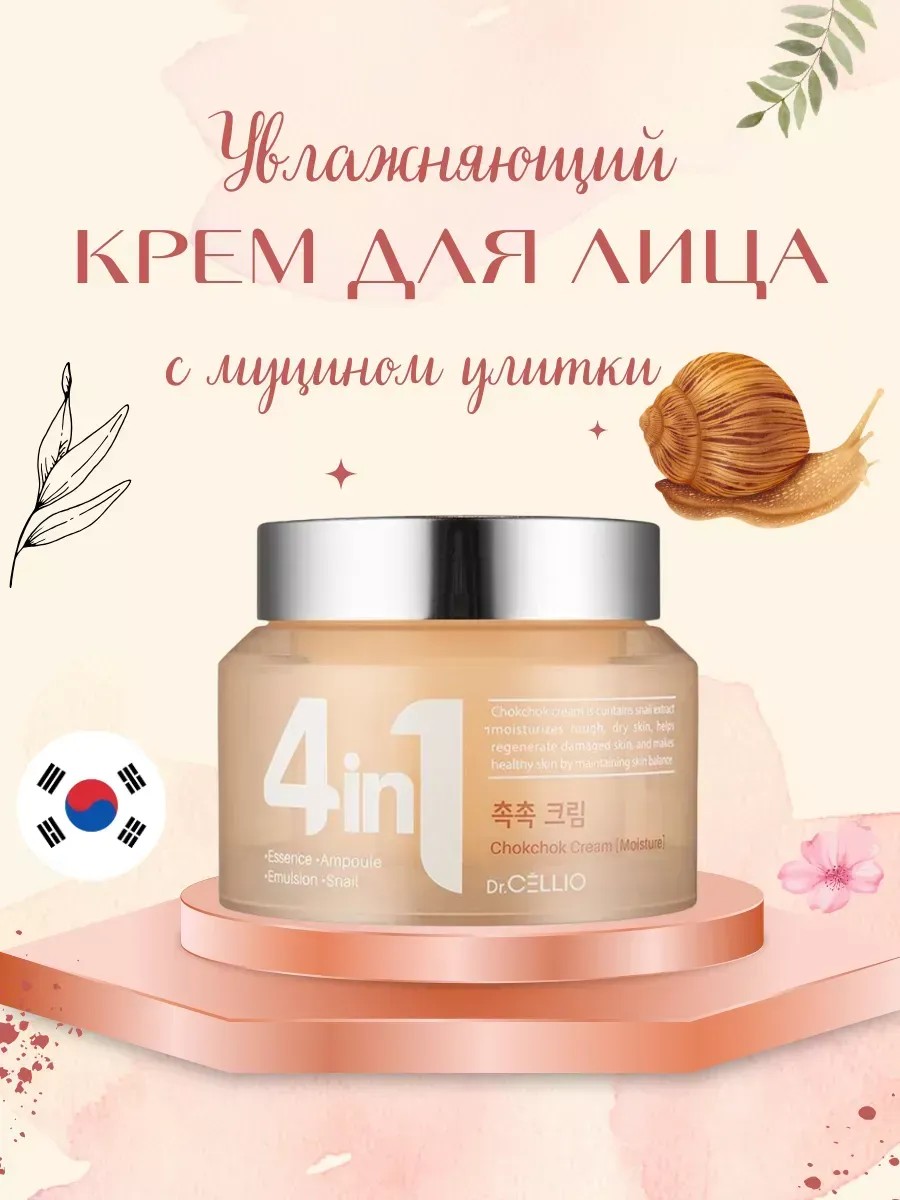 Антивозрастной лифтинг крем для лица Dr.Cellio G50 4 In 1 Chokchok Snail Cream, созданный на основе муцина улитки, представляет собой инновационное средство, способное вернуть вашей коже естественную молодость и сияние. Этот крем обеспечивает комплексный уход: он борется с морщинами, осветляет пигментные пятна, активизирует клетки кожи и восстанавливает ее упругость.
