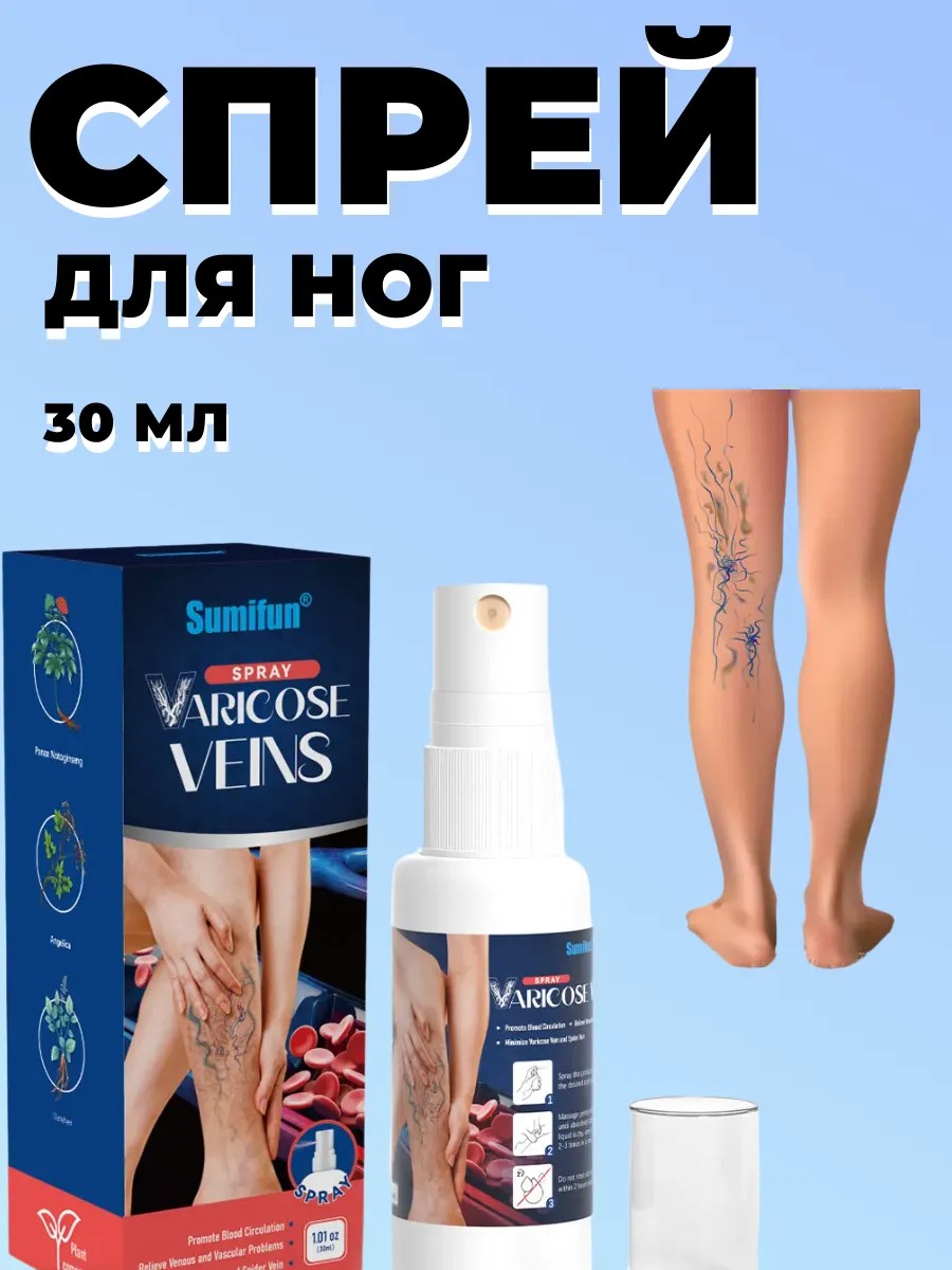 Спрей 30мл, разработанный для лечения и профилактики варикоза. Его уникальная формула, обладает мощным противоотечным действием, для снятия тяжести. Спрей легко заменит мазь для всех типов кожи, включая сухую и чувствительную, и может использоваться как мужчинами, так и женщинами, включая беременных. Борется с сосудистыми звездочками и трещинами, улучшая общее состояние. Питательные компоненты состава способствуют укреплению стенок сосудов и капилляров, предотвращая их дальнейшее расширение и снижая риск развития тромбофлебита. Увлажняющий эффект дает длительное ощущение комфорта и свежести, устраняя сухость и шелушение. Он также рекомендован против отеков и отечности, особенно в период беременности, когда нагрузка на ноги значительно увеличивается. Его легкая текстура быстро впитывается, не оставляя жирных следов, что делает его идеальным для ежедневного применения. Это средство будет настоящим чудом для тех, кто страдает от болей и усталости, даруя надежный уход и защиту. Подходит для взрослых и детей, обеспечивая безопасное и решение проблем с венами.
