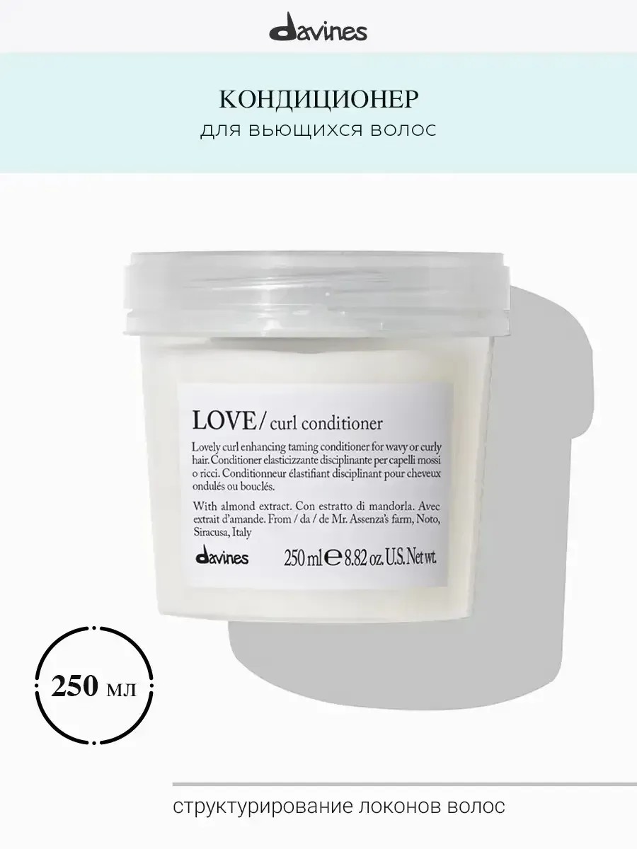 Кондиционер для усиления завитка LOVE Davines придает вьющимся волосам объем, эластичность и мягкость. Насыщен протеинами, витаминами В и Е. Обновленная формула с экстрактом миндаля из Ното питает и увлажняет волнистые и кудрявые волосы. Структурирует локоны, обеспечивая эффект антифриз. Обладает превосходным кондиционирующим и термозащитным действием. Идеально в сочетании с шампунем LOVE Davines. Подходит для тонких и волнистых волос. Равномерно нанести на подсушенные полотенцем волосы после использования шампуня для усиления завитка LOVE Davines. Оставить на 2-5 минут, расчесать волосы, смыть теплой водой. Перейти к желаемому стайлингу. Davines выпускает уходовую косметику премиум-класса под собственным брендом и поставляет ее в лучшие салоны красоты и магазины по всему миру. Профессиональные кондиционеры являются являются ключевым продуктом компании. Производство основано на использовании натуральных, экологически чистых компонентов и имеет сертификат B-Corp, компании под знаком которого добровольно соответствуют самым высоким стандартам социальной и экологической эффективности и прозрачности. Средства для ухода за волосами от Davines обладают эффектом восстановления, укрепления и защиты. Они подходят для окрашенных, поврежденных, вьющихся, сухих, а также волос склонных к выпадению.