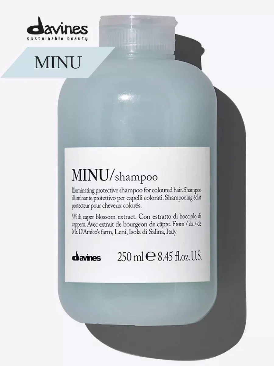 Защитный шампунь MINU мягко очищает волосы, сохраняя цвет окрашенных волос и придаёт волосам блеск и шелковистость.