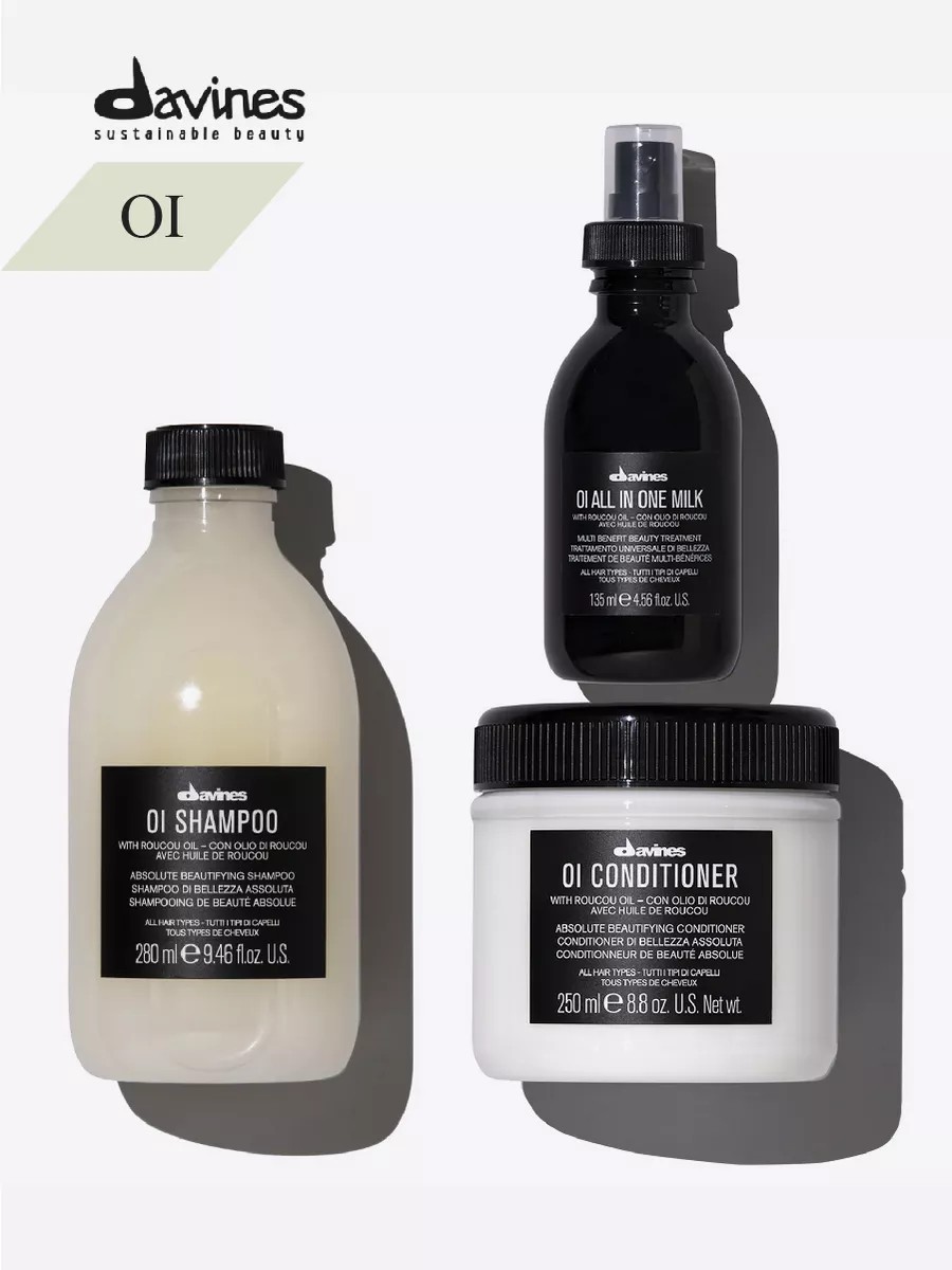 | Комплектация | Davines OI шампунь для абсолютной красоты волос; Davines OI кондиционер для абсолютной красоты волос; Davines OI Многофункциональное молочко для волос |