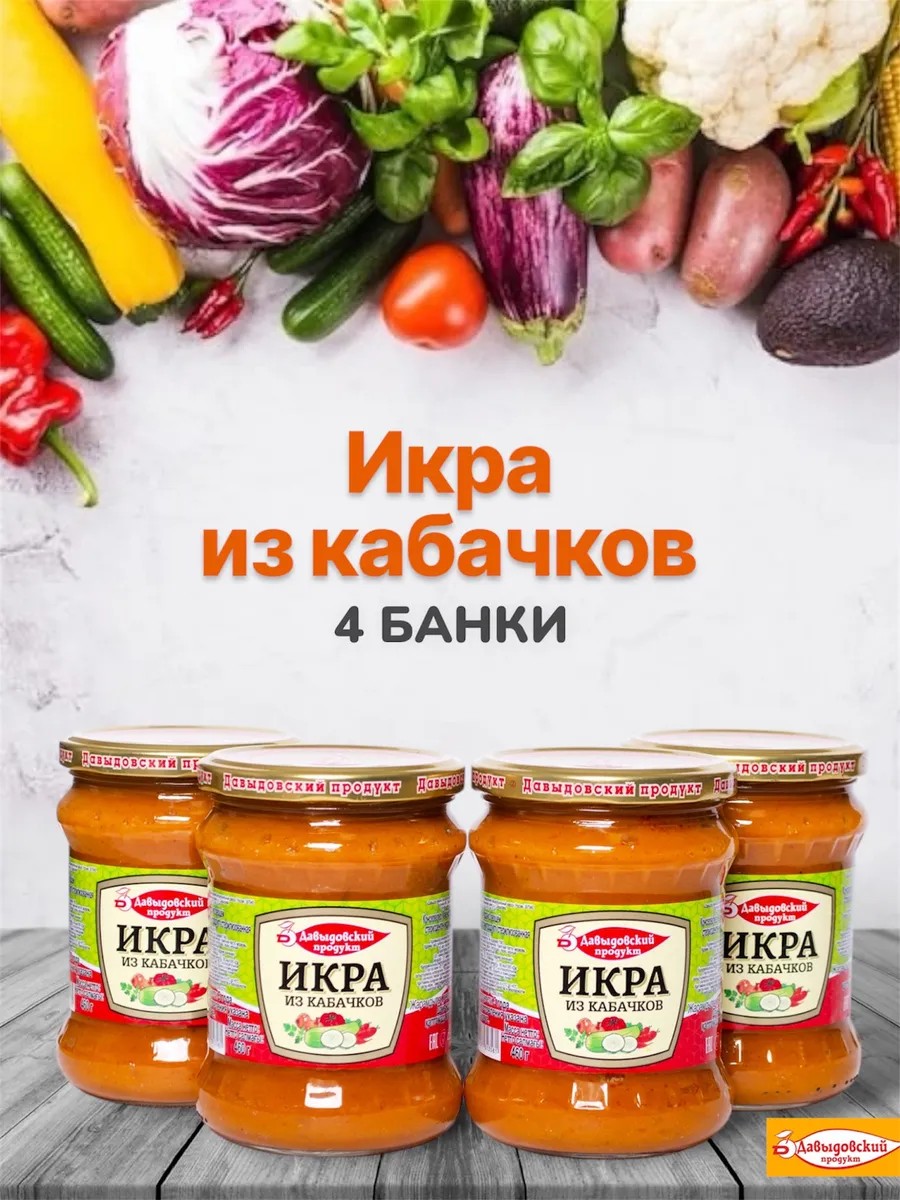 Давыдовский продукт Консервы овощные икра кабачковая в банках 4шт