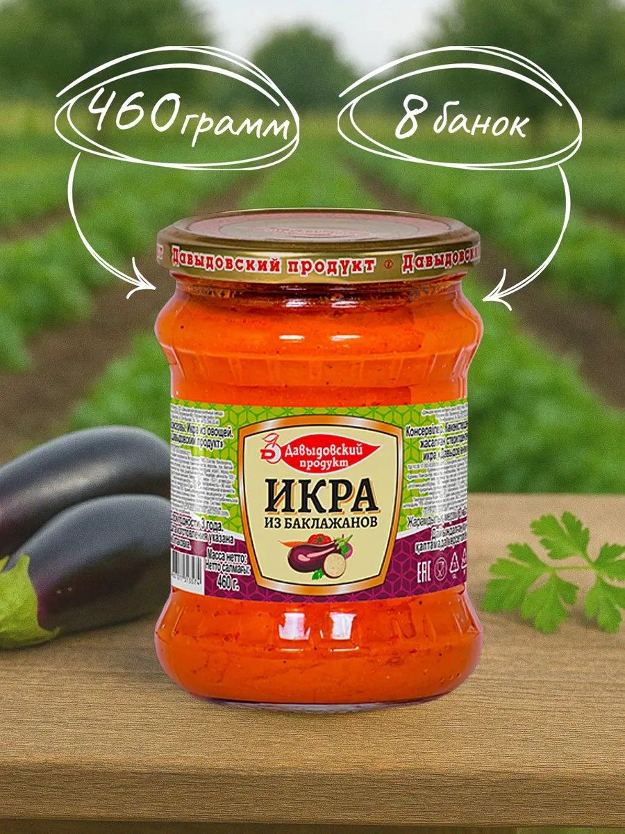 Представляем вам вкуснейшую баклажановую икру, идеально подходящую для вегетарианского питания. Этот продукт станет отличным дополнением к вашему рациону и украсит любое застолье. Вегетарианская икра из баклажанов — это не просто закуска, а настоящая находка для любителей овощных консервов.Икра представляет собой комбинацию тщательно отобранных овощей, что делает ее особенно вкусной и ароматной. Каждый кусочек наполнен насыщенным вкусом, который идеально подойдет как для намазывания на хлеб, так и для подачи в качестве самостоятельного блюда. Благодаря своей универсальности она отлично сочетается с различными гарнирами и салатами.Этот продукт отвечает всем требованиям здорового питания и может стать основой для разнообразных блюд. Овощная закуска не содержит искусственных добавок и консервантов, что делает ее безопасной и полезной для всей семьи. Баклажанная икра — это идеальный выбор для тех, кто стремится к разнообразию в своем меню.Консервы в стеклянной упаковке сохраняют все питательные вещества овощей, что обеспечивает длительный срок хранения без потери вкусовых качеств. Закуски из овощей прекрасно подойдут как для повседневного употребления, так и для праздничного стола. Удивите своих гостей этой восхитительной закуской!Состав продукта включает только натуральные ингредиенты: свежие баклажаны, томаты и пряности, которые придают икре неповторимый вкус. Такая комбинация делает ее не только очень вкусной, но также питательной — она полна витаминов и микроэлементов.Эта баклажановая икра станет вашим любимым элементом гастрономического эксперимента! Попробуйте использовать ее в качестве основы для пиццы или в пастах вместо традиционных соусов. Также можно добавлять в салаты или подавать вместе с запеченными овощами — возможностям нет предела!Продукты на основе баклажанов являются прекрасным источником клетчатки, что способствует улучшению пищеварения и поддержанию здоровья организма в целом. Вегетарианские продукты не только полезны, но также могут быть удивительно вкусными! Позвольте себе насладиться настоящим удовольствием от еды с этим великолепным продуктом.Закуска станет отличным решением для перекуса или легкого ужина — просто откройте банку, намазав на тосты или подайте с крекерами! Овощная консервация поможет сохранить богатый урожай летних овощей на долгое время.Пробуйте новую баклажановую икру от Давыдовского продукта сегодня же! Это именно то самое лакомство, которое добавит яркие нотки в ваше ежедневное питание. Воспользуйтесь преимуществами здорового образа жизни с этой замечательной икрой из баклажанов!Ваша кухня станет еще более разнообразной благодаря этому уникальному продукту. Идеально подходит как для семейного обеда, так и для дружеских встреч! Не упустите возможность порадовать себя настоящими вкусовыми удовольствиями с помощью этой восхитительной овощной закуски.