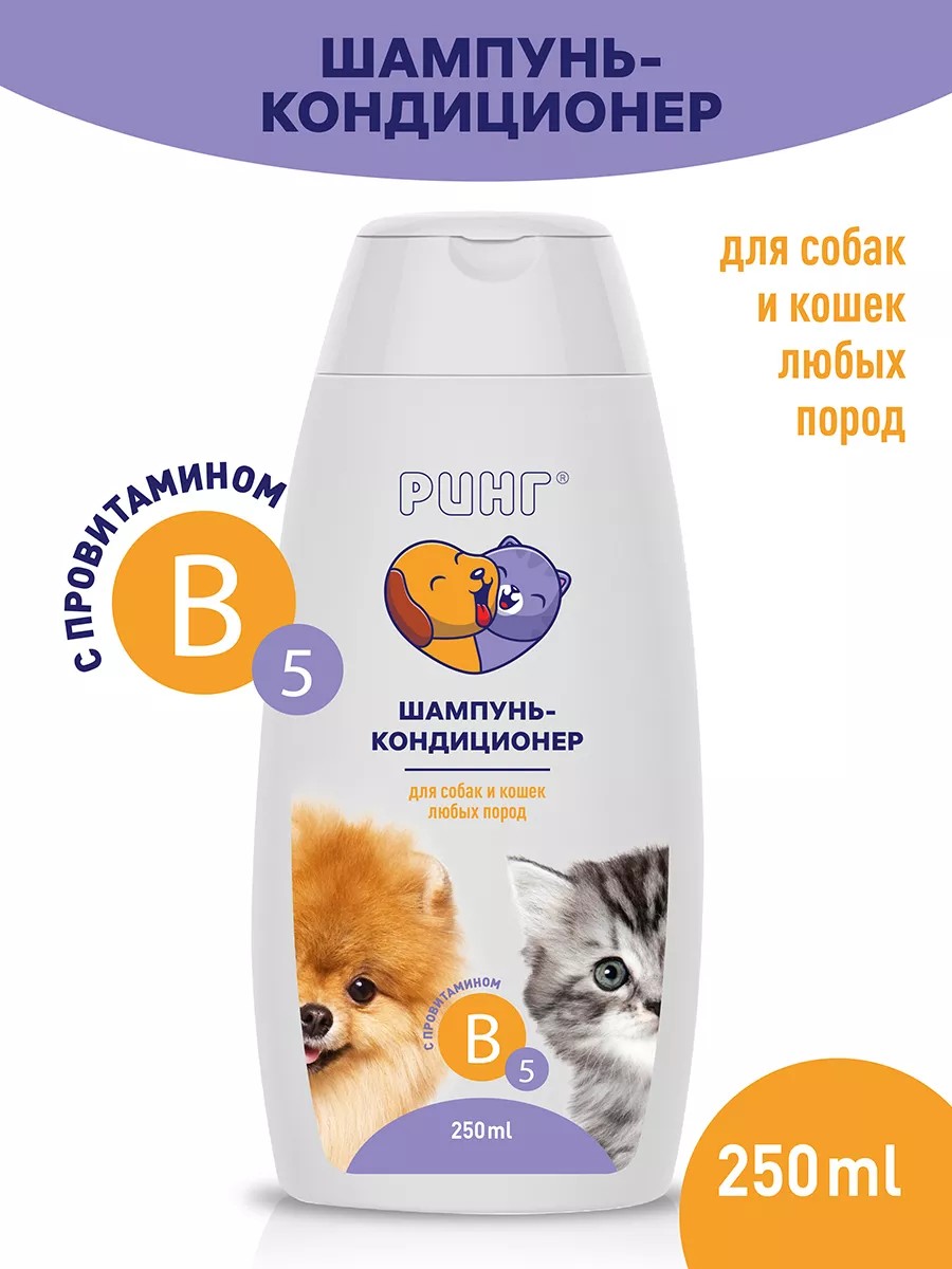 Шампунь кондиционер для собак и кошек"Ринг" с ультрамягкой формулой специально разработан для регулярного использования и подходит для всех типов кожи. Шампунь кондиционер с Д-пантенолом бережно очищает и увлажняет кожу, делает шерсть мягкой и блестящей, предотвращает ее спутывание и облегчает расчесывание. Не содержит парабеном.