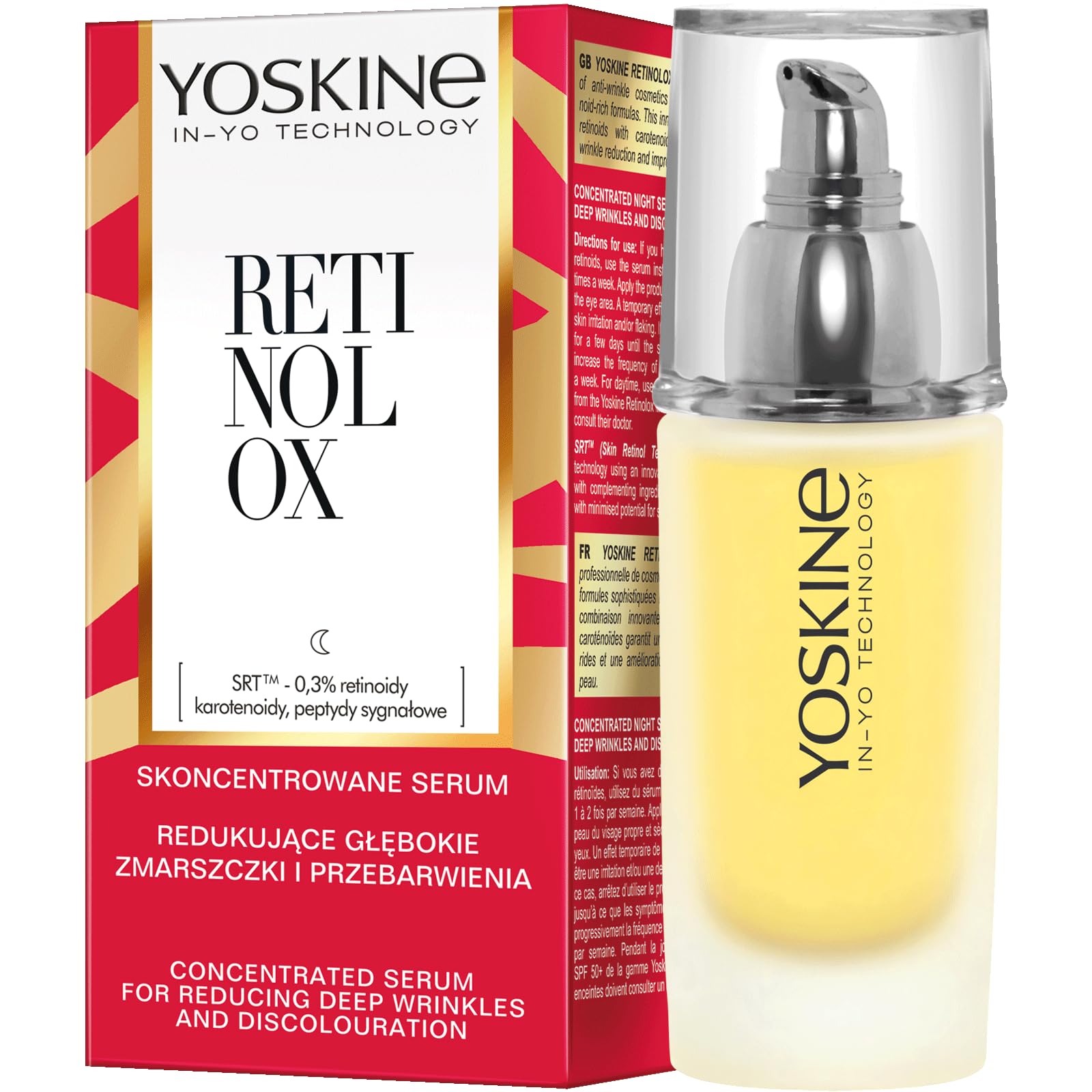YOSKINE Retinolox – a professional anti-wrinkle cosmetic line with advanced formulas rich in retinoids. The innovative combination of retinoids and carotenoids effectively reduces wrinkles and improves the skin structure. SRTTM (Skin Retinol Technology) – advanced technology using an innovative combination of retinoids with ingredients that complement their action, such as carotenoids, signal peptides, ceramides . Maximum efficacy and minimization of potential skin irritation. Effective ingredients: retinoids (retinol pro-retinol neo-retinoid) 3 vitamin A derivatives with complementary and synergistic mechanisms of action that provide an enhanced anti-aging effect. Carotinoids: they protect the skin against free radicals and thus prevent aging. Individual products contain selected ingredients. INGREDIENTS Aqua (water), propanediol, glycerin, dimethicone, caprylic capric triglyceride, dicaprylyl ether, Helianthus Annuus (sunflower) seed oil, collagen amino acids, diisopropyl adipate, hydrolyzed candida saitoana extract, leuconostoc radish fermentation filtration. ate, Daucus Carota sativa (carrot seed oil, pullulan, daucus carota sativa (carrots) root extract, beta-carotene, hydroxypinacolone retinoate, retinyl palmitate, retinol, sorbitan isostearate, ascorbyl palmitate, tocopherol, propylene glycol, polysorbate 60, hydroxyethyl acrylate, sodium amitate. Cryloyl dimet. hyltaurate copolymer, isostearyl hydroxystearate, hydroxypropyl cyclodextrin, octadecyl di-butyl-4-hydroxyhydrocinnamate, disodium EDTA, ethylhexylglycerin, phenoxyethanol, hydroxyacetophenone, linalyl acetate, tetramethyl acetyloctahyl acetyloctahydronaphthalene Perfume (Fragnan ce), CI 19140. Contains vitamin A. Record your daily download before useCeramide component of the skin cell cement. They replenish the skin's protective barrier and prevent excessive water loss from the epidermis. Individual products contain selected ingredients. Carotinoids: they protect the skin against free radicals and thus prevent aging. Effective ingredients: retinoids (retinol pro-retinol neo-retinoid) 3 vitamin A derivatives with complementary and synergistic mechanisms of action that provide an enhanced anti-aging effect. SRTTM (Skin Retinol Technology) – advanced technology using an innovative combination of retinoids with ingredients that complement their action, such as carotenoids, signal peptides, ceramides . Maximum efficacy and minimization of potential skin irritation. YOSKINE Retinolox – a professional anti-wrinkle cosmetic line with advanced formulas rich in retinoids. The innovative combination of retinoids and carotenoids effectively reduces wrinkles and improves the skin structure.Yoskine Retinolox nachtserum, intensieve anti-aging verzorging voor diepere rimpels en verkleuringen YOSKINE Retinolox – een professionele anti-rimpel cosmetielijn met geavanceerde formules die rijk zijn aan retinoïden. De innovatieve combinatie van retinoïden en carotenoïden zorgt voor een effectieve vermindering van rimpels en verbetering van de huidstructuur. SRTTM (Skin Retinol Technology) – geavanceerde technologie met behulp van een innovatieve combinatie van retinoïden met ingrediënten die hun werking aanvullen, zoals carotenoïden, signaalpeptiden, ceramiden . Maximale werkzaamheid en minimalisering van potentiële huidirritatie. Effectieve bestanddelen: retinoïden (retinol pro-retinol neo-retinoïd) 3 vitamine A-derivaten met complementaire en synergetische werkingsmechanismen die voor een versterkte anti-aging werking zorgen. Carotinoïden: ze beschermen de huid tegen vrije radicalen en voorkomen zo veroudering. Afzonderlijke producten bevatten geselecteerde ingrediënten. INGREDIËNTEN Aqua (water), propaandiol, glycerine, dimethicon, capryl capric-triglyceride, dicaprylylether, Helianthus Annuus (zonnebloem)zaadolie, collageenaminozuren, diisopropyladipaat, gehydrolyseerd candida saitoana-extract, leuconostoc radijs fermentfiltratie. at, Daucus Carota sativa (wortelzaadolie, pullulan, daucus carota sativa (wortelen) wortelextract, beta-caroteen, hydroxypinacolonretinoaat, retinylpalmitaat, retinol, sorbitanisostearaat, ascorbylpalmitaat, tocoferol, propyleenglycol, polysorbaat 60, hydroxyethylacrylaat, natriumamitaat. Cryloyldimet. hyltauraat-copolymeer, isostearyl hydroxystearaat, hydroxypropyl cyclodextrine, octadecyl di-butyl-4-hydroxyhydrocinnamaat, disodium EDTA, ethylhexylglycerine, fenoxyethanol, hydroxyacetofenone, linalyl acetaat, tetramethyl acetyloctahyl acetyloctahydronaftaleen Parfum (Fragnan). ce), CI 19140. Bevat vitamine A. Vóór gebruik je dagelijkse download opnemenCeramide bestanddeel van het huidcelcement. Ze vullen de beschermende barrière van de huid aan en voorkomen overmatig waterverlies uit de epidermis. Afzonderlijke producten bevatten geselecteerde ingrediënten. Carotinoïden: ze beschermen de huid tegen vrije radicalen en voorkomen zo veroudering. Effectieve bestanddelen: retinoïden (retinol pro-retinol neo-retinoïd) 3 vitamine A-derivaten met complementaire en synergetische werkingsmechanismen die voor een versterkte anti-aging werking zorgen. SRTTM (Skin Retinol Technology) – geavanceerde technologie met behulp van een innovatieve combinatie van retinoïden met ingrediënten die hun werking aanvullen, zoals carotenoïden, signaalpeptiden, ceramiden . Maximale werkzaamheid en minimalisering van potentiële huidirritatie. YOSKINE Retinolox – een professionele anti-rimpel cosmetielijn met geavanceerde formules die rijk zijn aan retinoïden. De innovatieve combinatie van retinoïden en carotenoïden zorgt voor een effectieve vermindering van rimpels en verbetering van de huidstructuur.