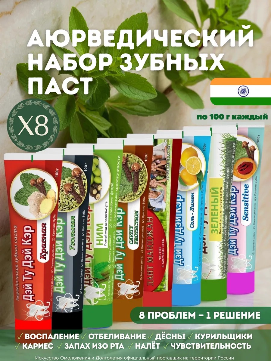 Уникальный набор аюрведических паст Day 2 Day Care — это комплексный уход за полостью рта, созданный на основе древних традиций и натуральных растительных ингредиентов.