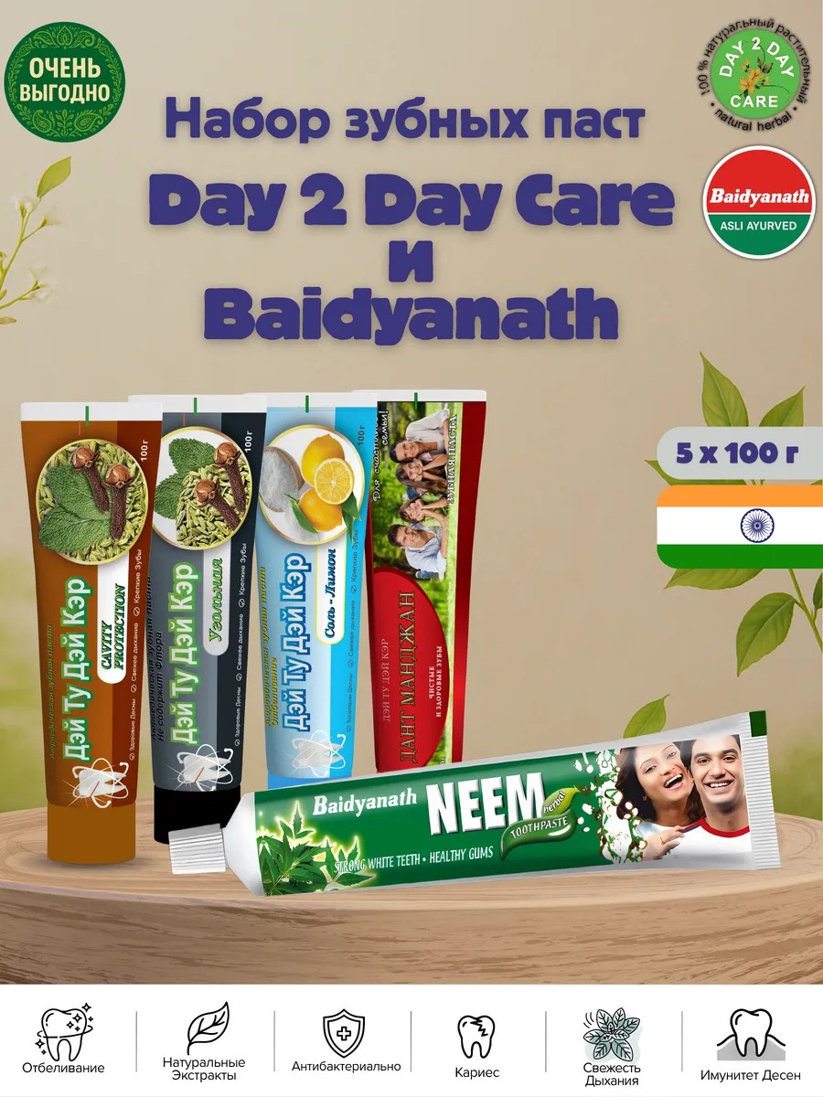 Этот набор идеально подходит для ежедневного использования и подарит вам ощущение свежести и чистоты. Попробуйте базовый набор зубных паст Day 2 Day Care и откройте для себя силу аюрведического ухода за полостью рта!