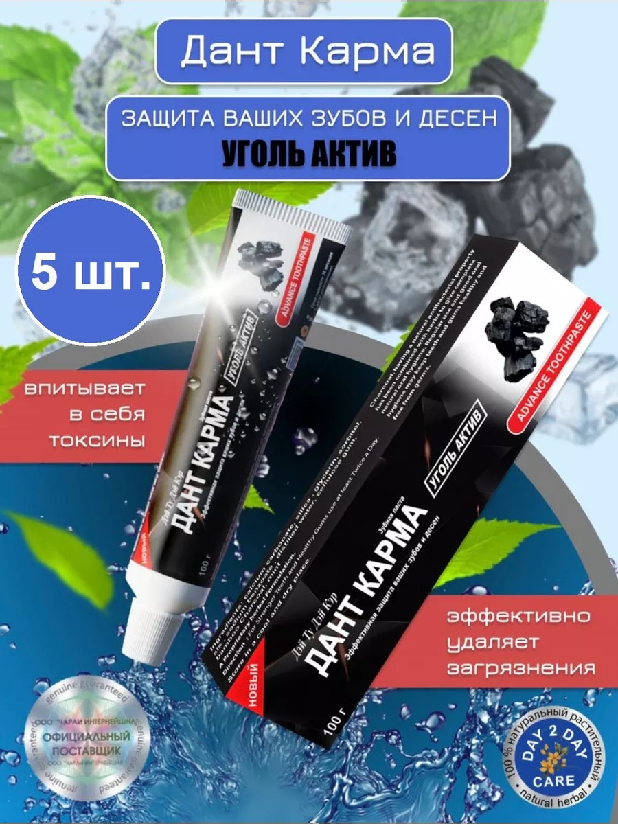 Day 2 Day Care Зубная паста DANT KARMA Уголь актив 5 шт.