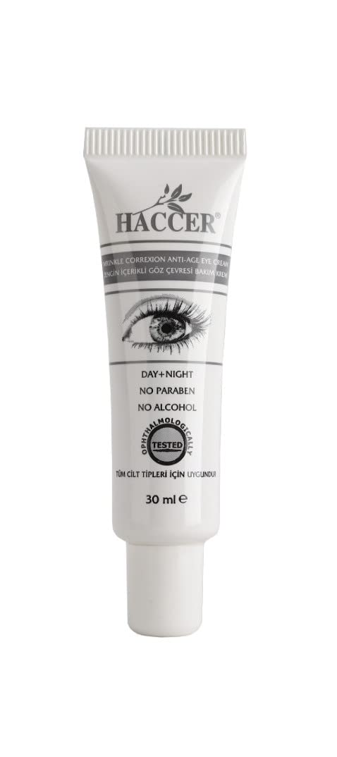 The Haccer eye cream has been specially developed to intensively care for and protect the sensitive skin of the eyes. With a unique formula of natural oils, plant extracts and peptides, it provides long-lasting moisture, reduces swelling, reduces dark circles and smoothes fine lines and wrinkles. The cream strengthens the skin barrier, promotes collagen production and provides a fresh, radiant look - ideal for all skin types and daily use. SAFETY WARNING For external use only. Avoid contact with the eyes. If the product comes into contact with the eyes, rinse immediately with plenty of water. Do not apply to open wounds or severely irritated skin. Keep out of reach of children. Discontinue use if skin irritation or allergic reactions occur.Free from parabens and dyes: suitable for all skin types, even sensitive skin. Long-lasting moisture: protects against dryness and provides a smooth, fresh skin feeling. With peptides: supports collagen production and prevents wrinkle formation. Natural oils and plant extracts: gently care, hydrate and soothe sensitive skin. Reduces dark circles and puffiness: effective against dark shadows and puffy eyes.Dag Nacht Oogcrème, 30 ml, anti-aging verzorging tegen kringen en rimpels, met natuurlijke oliën en peptiden, hydraterend, voor alle huidtypes, zonder parabenen De Haccer oogcrème is speciaal ontwikkeld om de gevoelige huid van de ogen intensief te verzorgen en te beschermen. Met een unieke formule van natuurlijke oliën, plantenextracten en peptiden geeft het langdurige vocht, vermindert zwellingen, vermindert donkere kringen en maakt fijne lijntjes en rimpels glad. De crème versterkt de huidbarrière, bevordert de collageenproductie en zorgt voor een frisse, stralende look – ideaal voor alle huidtypes en dagelijks gebruik. VEILIGHEIDSWAARSCHUWING Alleen voor uitwendig gebruik. Vermijd contact met de ogen. Als het product in de ogen terechtkomt, onmiddellijk met veel water uitspoelen. Niet aanbrengen op open wonden of sterk geïrriteerde huid. Buiten het bereik van kinderen houden. Stop het gebruik bij huidirritatie of allergische reacties.Vrij van parabenen en kleurstoffen: geschikt voor alle huidtypes, ook bij gevoelige huid. Langdurig vocht: beschermt tegen droogte en zorgt voor een glad, fris huidgevoel. Met peptiden: ondersteunt de collageenproductie en voorkomt rimpelvorming. Natuurlijke oliën en plantenextracten: verzorgen zacht, hydrateren en kalmeren de gevoelige huid. Vermindert donkere kringen en zwellingen: werkt effectief tegen donkere schaduwen en gezwollen ogen.