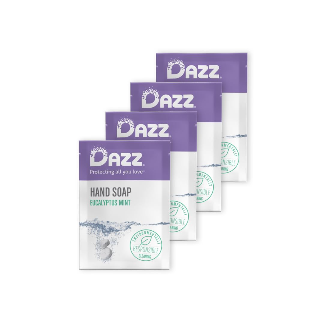 Dazz Foaming Hand Soap Refill Pack (4 Refill Tablet Packets) Hand Soap Refill Naturally Safe & Non Toxic Rich Lather Hand Wash Eucalyptus Mint Scent (Foaming Pump Dispenser Required) Eucalyptus Mint 1 Count (Pack of 1)