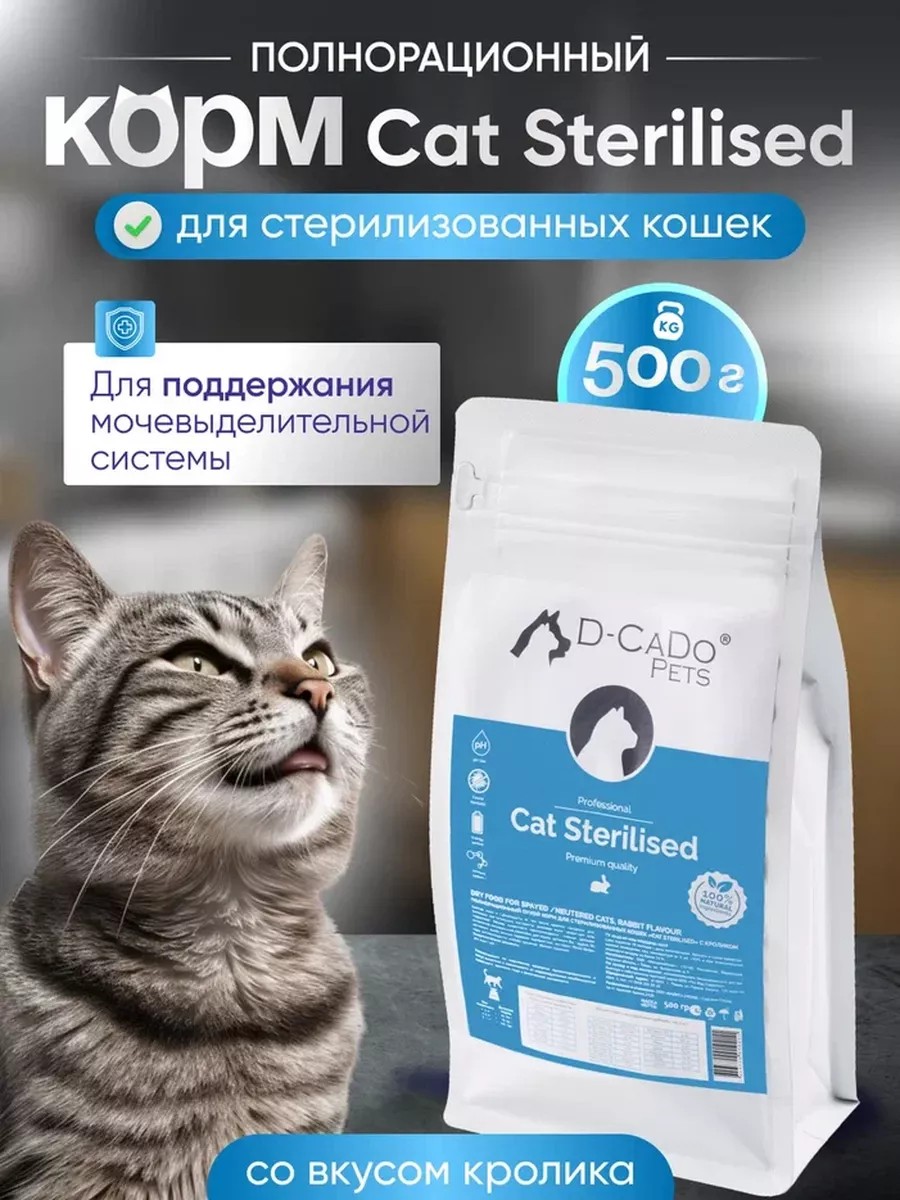 DCaDo Pets Сухой корм для стерилизованных кошек с кроликом, 500 гр