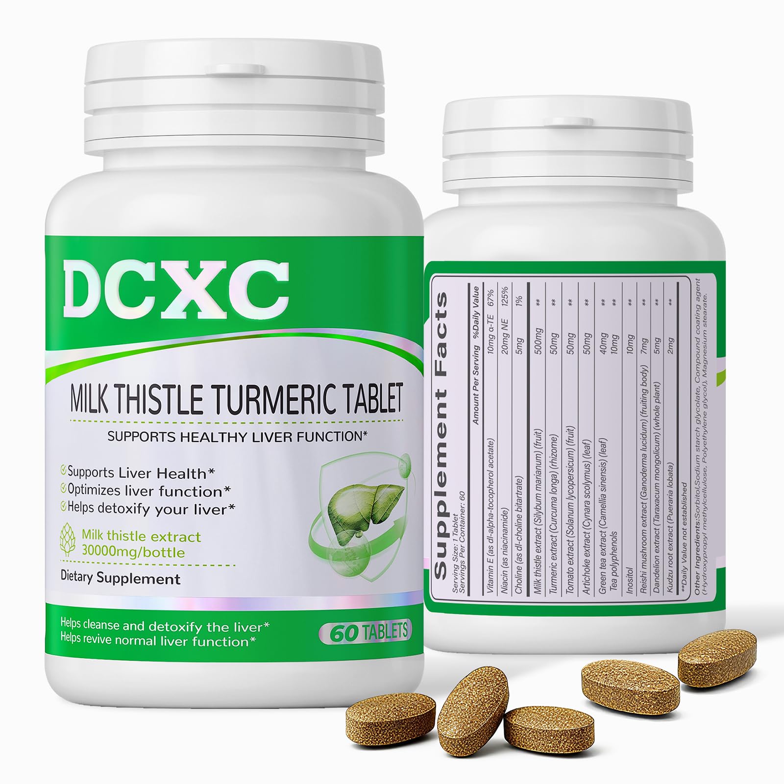 DCXC Liver Detox Supplement 30000mg Milk Thistle Turmeric Tablet Stay up Late Supports Liver Health 60 Tablets
