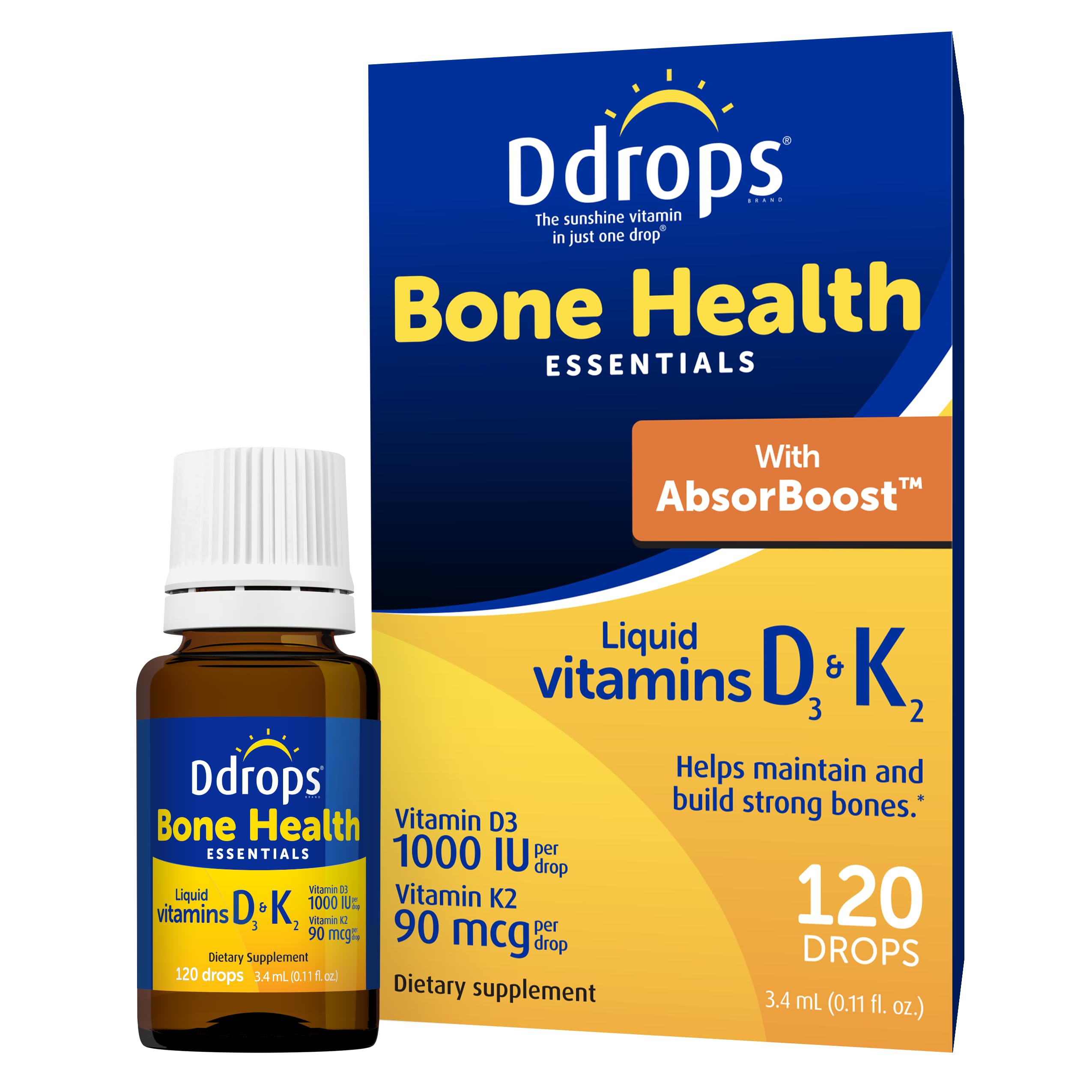 Ddrops Adult Bone Health 1000 IU Vitamin D3 + 90 mcg K2-120 Drops - Helps Maintain and Build Strong Bones and Teeth. No Artificial Preservatives No Sugar Non-GMO Allergy-Friendly