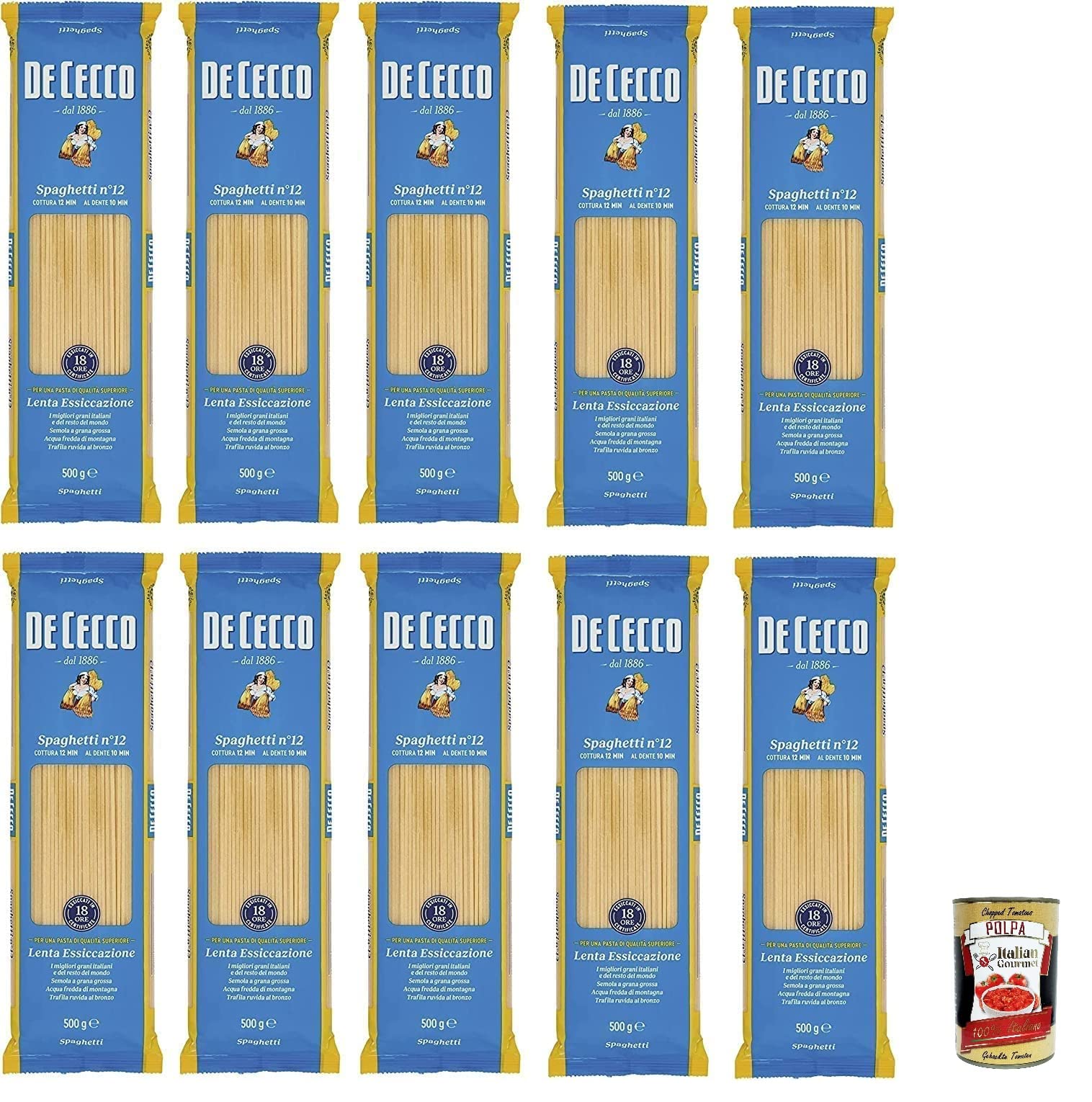 10 x Pasta De Cecco 100 Italiaanse spaghetti n. 12 noedels 500 g Italian Gourmet Polpa 400g