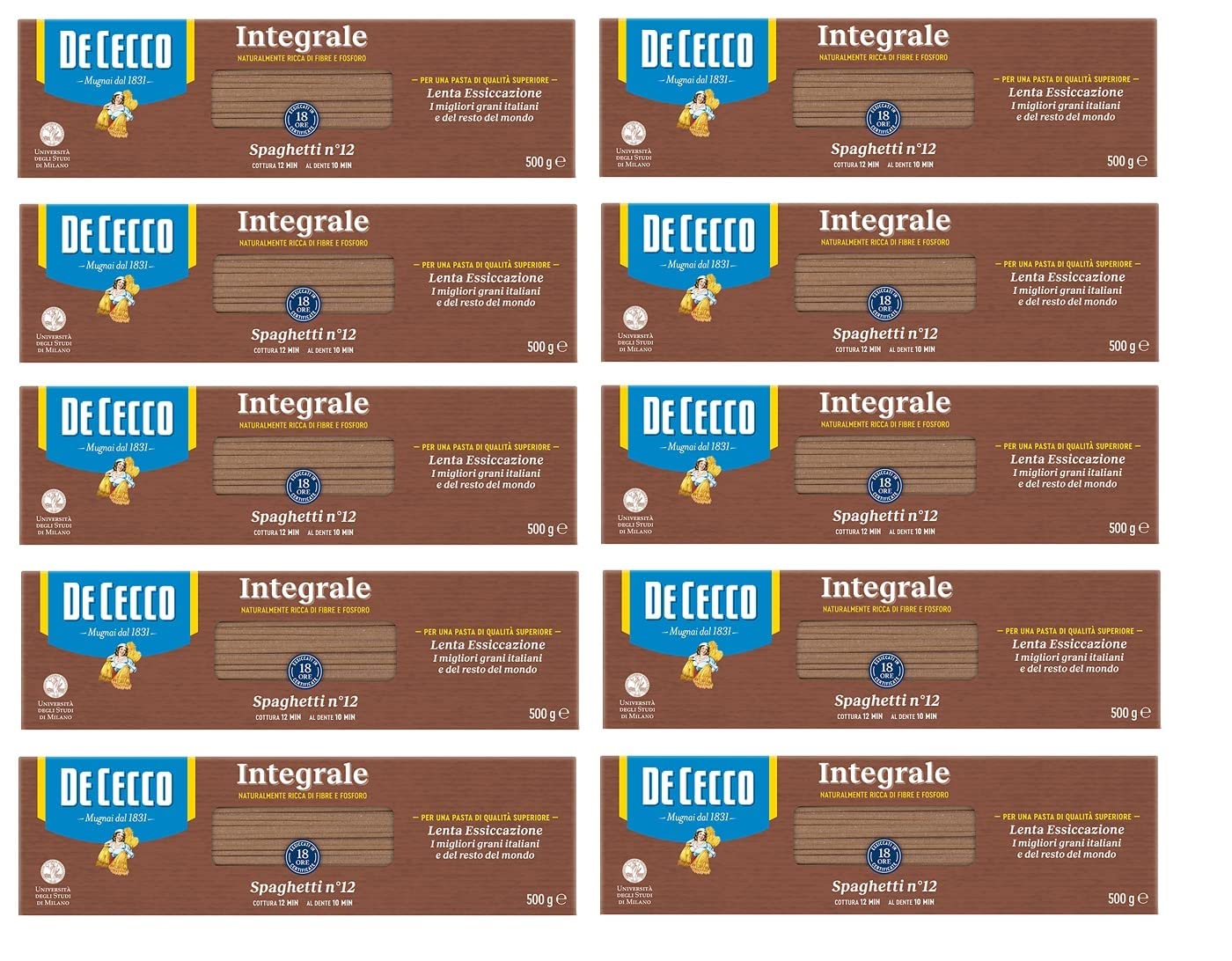 Historically in the first Italian dictionary Nicolò Tommaseo and Bernardo Bellini (1819). Here spaghetti is added as a "single male thread dimension" and is called "spaghetti soup: pastas with a thin cord thick and long like a japellinia". In 1957 the BBC broadcast the first documentary on the making of spaghetti and the next day the TV studios were clogged by viewers asking for the name of the spaghetti manufacturers and distributors to buy them. Spaghetti are so versatile that they can be served with all condiments, from fish to meat, from vegetables to cheese, but are also excellent in white, seasoned only with extra virgin olives and a pinch of Parmesan cheese. Available in a pack of 500 g. INSTRUCTIONS FOR USE Cook for 11 minutes10 x De Cecco spaghetti integrali n.12 Vollkor Italiaanse noedels 500 g Historisch gezien in het eerste Italiaanse woordenboek Nicolò Tommaseo en Bernardo Bellini (1819). Hier wordt spaghetti als "enkele mannelijke draaddimensie" toegevoegd en wordt deze "spaghettisoep: pasta's met een dun koord dik en lang als een japellinia" genoemd. In 1957 stuurt de BBC de eerste documentaire over het maken van spaghetti en de volgende dag later zijn de tv-studio's verstopt door kijkers die naar de naam van de spaghettiproducenten en -distributeurs vroegen om ze te kopen. Spaghetti zijn zo veelzijdig dat ze met alle specerijen kunnen worden geserveerd, van vis tot vlees, van groenten tot kaas, maar zijn ook uitstekend in wit, alleen gekruid met extra vierge olijven en een snufje Parmezaanse kaas. Verkrijgbaar in een verpakking van 500 g. GEBRUIKSAANWIJZING Kook gedurende 11 minuten