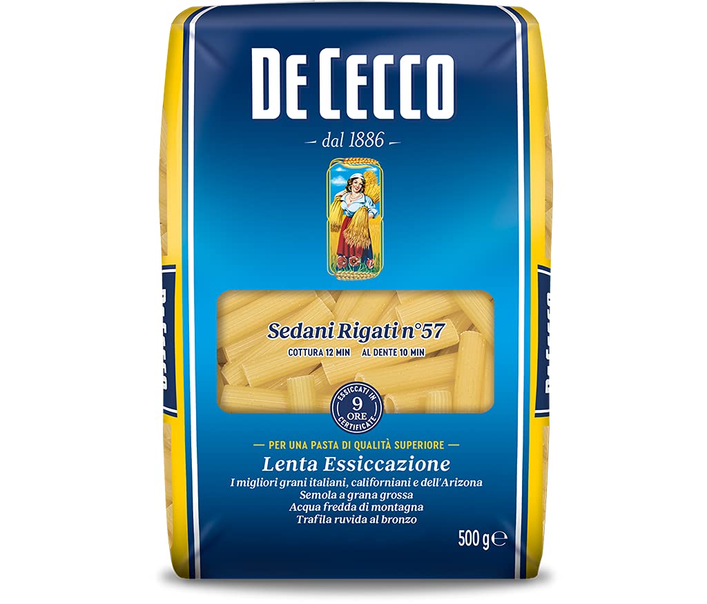 Premium Durum Wheat Semolina Pasta. Over a century ago, in Abruzzo, began the story of a company that, like all great companies, relied on an army of passionate men. This is the story of the De Cecco Brothers' Mill and Pasta Factory, which for over 130 years has produced pasta synonymous with quality and Italian pleasure worldwide. This story dates back to the vicissitudes of pre-unification Italy, when in Farah San Martino, a small town at the foot of Mount Magellan, Don Nicola De Cecco produced "the best flour in the whole countryside" in his stone mill. As tradition dictated for generations, "Zi Nicola" passed on all his art and passion to his son, Filippo Giovanni, who thus began a new chapter in the De Cecco family history by starting pasta production. This is how the De Cecco Brothers' Mill and Pasta Factory was born. The year was 1886. "The best flour in the whole countryside" began the long journey that would lead it to become superior quality pasta. Don Filippo Giovanni De Cecco, combining his long-standing artisanal experience with his engineering intuition, developed a new low-temperature dryer, thus breaking the constraint that had made production dependent on weather conditions. Until then, pasta had always been sun-dried, the only way to guarantee the product's exceptional quality and shelf life. It was thanks to this insightful intuition that the De Cecco factory began to expand into new markets, initiating the company's internationalization process. In 1908, the young Abruzzo peasant woman with her sheaves of wheat became the company's symbol. After the Second World War, a period of growth began to emerge, bringing De Cecco to its current size: the factory, completely razed by German bombing, was rebuilt and resumed production, incregly geared towards an international perspective. In the 1950s, to support this renewed production, the Pescara Pasta Factory was inaugurated to handle the increased production demands of those years. 1980 marked another inauguration: a new, modern production unit with significantly expanded capacity was established in Farah San Martino. In 1985, new market demands emerged, forcing the Company to prepare for a fundamental transition and establish its own sales network. Another important milestone was the creation of the "Huilière Company" in 1986, marking the first step towards a substantial differentiation of the product range, which would be further expanded in 1993. The 1990s were a period of massive investment: the new Farah San Martino mill was built, boasting a processing capacity equivalent to 11,000 quintals of wheat per day. In 1997, the Ortolan factory was founded, a prime example of modernity and cutting-edge technology serving the long-standing tradition of pasta making. Over time, much has changed: today, the De Cecco brand is synonymous with exceptional quality in the semolina pasta sector, and De Cecco is a group with a turnover exceeding €220 million, a third of which comes from exports. However, the commitment to passing on, safeguarding, and consolidating the Founder's production principles remains unchanged: high-quality wheat, fresh semolina straight from its own mill, bronze dies, slow drying at low temperatures, and continuous quality control. Then as now, everything stems from the symbiosis between strong passions and the relentless pursuit of perfection, which is evident in every De Cecco touch, starting with the pasta itself. INGREDIENTS Premium quality organic whole wheat durum wheat semolina pasta SAFETY WARNING Do not expose to sunlight See moreDe Cecco Pâtes Sedani Rigati 500 g - Lot de 6DESCRIPTION DU PRODUIT DESCRIPTION DU PRODUIT Pâtes alimentaire de semoule de blé dur de qualité supérieure Il y a plus de cent ans, dans les Abruzzes, commençait l'histoire d'une entreprise qui, comme toutes les grandes entreprises, comptait sur une armée d'hommes remplis de passion. C'est l'histoire du Moulin et de la Fabrique de Pâtes Alimentaires des Frères De Cecco qui, depuis plus 130 ans, produit des pâtes qui sont synonymes de qualité et de plaisir à l'italienne dans le monde entier. Cette histoire remonte aux vicissitudes de l'Italie avant l'unification, quand à Farah San Martino, un petit bourg au pied de la Magellan, Don Nicola De Cecco produisait dans son moulin en pierre "la meilleure farine de toute la campagne". Comme le dictait la tradition déjà depuis plusieurs générations, "Zi Nicola" transmit tout son art et sa passion au fils Filippo Giovanni qui entama ainsi un nouveau chapitre de l'histoire de la famille De Cecco, en commençant la production de pâtes. Voilà comment sont nés le Moulin et la Fabrique de Pâtes Alimentaires des Frères De Cecco. Nous sommes en 1886. "La meilleure farine de toute la campagne" commence le long voyage qui la conduira à devenir des pâtes de qualité supérieure. Don Filippo Giovanni De Cecco, alliant l'ancienne expérience artisanale et ses intuitions d'ingénierie, mit au point un nouveau modèle de sécheur à basse température, brisant ainsi la limite qui subordonnait la production aux conditions météorologiques. Jusqu'alors, les pâtes avaient toujours été séchées au soleil, le seul moyen pour garantir l'extrême qualité et la capacité de conservation du produit. C'est grâce à cette perspicace intuition que la Fabrique De Cecco commença à s'ouvrir vers de nouveaux marchés, donnant le départ au processus d'internationalisation de l'entreprise. En 1908, la jeune paysanne abruzzaise avec ses gerbes de blé devint le symbole de l'Entreprise. C'est après la Deuxième Guerre Mondiale qu'une phase de croissance commença à poindre le bout de son nez et amena De Cecco à ses dimensions actuelles: l'usine, complètement rasée par les bombardements allemands, fut bâtie à nouveau et reprit la production, de plus en plus orientée vers une perspective internationale. Dans les années '50, afin de soutenir cette renaissance de production, la Fabriq