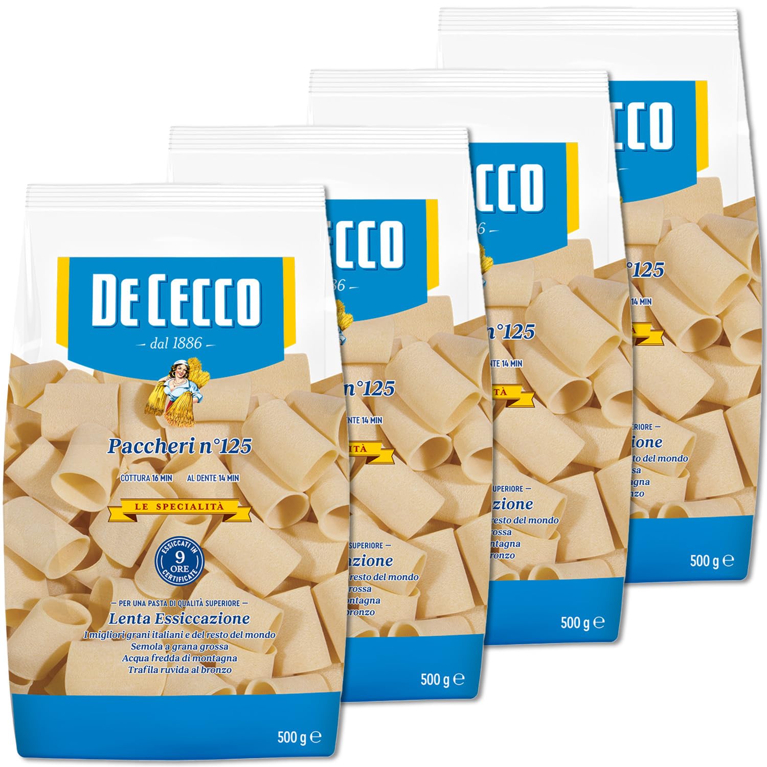 De Cecco Lot de 4 p tes de Cecco Le specialita' 100% italien Paccheri N 125 500 g + Polpa Italian Gourmet Polpa 400 g