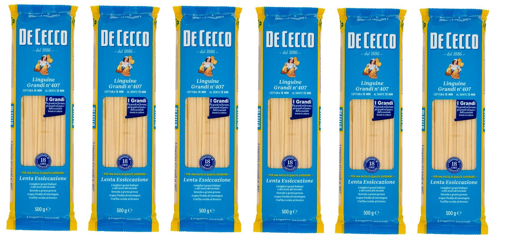 De Cecco Pack of 6 De Cecco 100% Italian Linguine Grandi pasta no. 407 500g