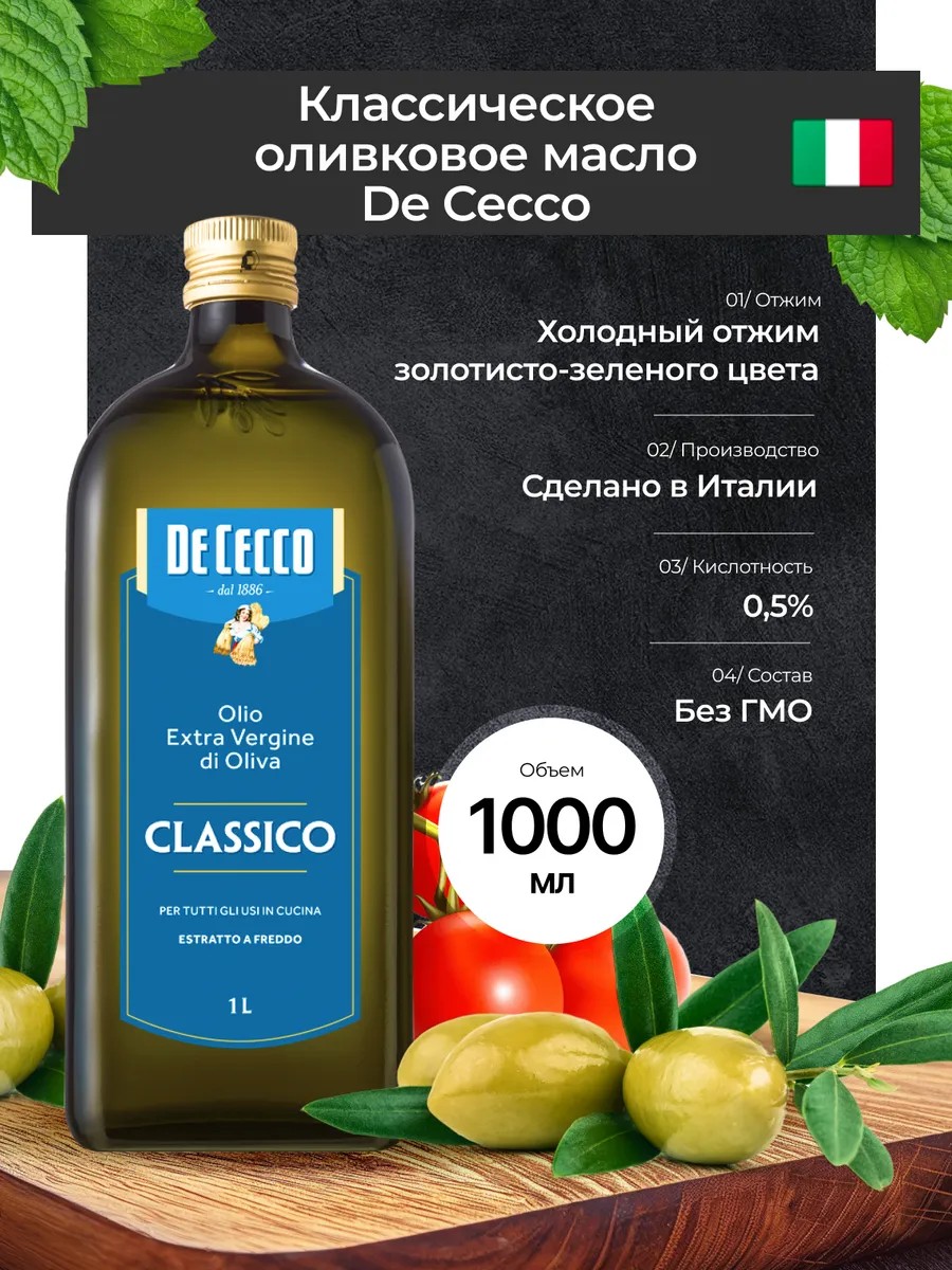 Оливковое масло De Cecco первого холодного отжима — это натуральный продукт высочайшего качества, созданный для тех, кто ценит полезную и вкусную пищу. Это оливковое масло extra virgin производится по технологии холодного отжима, что позволяет сохранить все ценные вещества, витамины и природные жиры, необходимые для поддержания здоровья организма. Оно идеально подходит для жарки, добавления в салаты, закуски, соусы и другие блюда, придавая им неповторимый аромат свежих оливок и пикантный вкус.