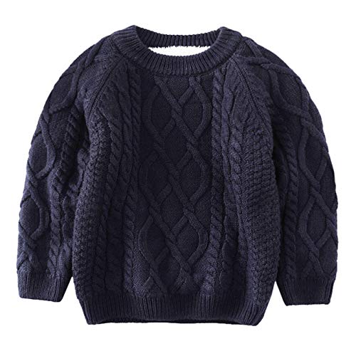 De feuilles Toddler Unisex Baby Cable Knit Pullover Sweater Chunky Knitted Jumper Knitwear with Warm Lining Yellow 2-3 Years Navy Blue