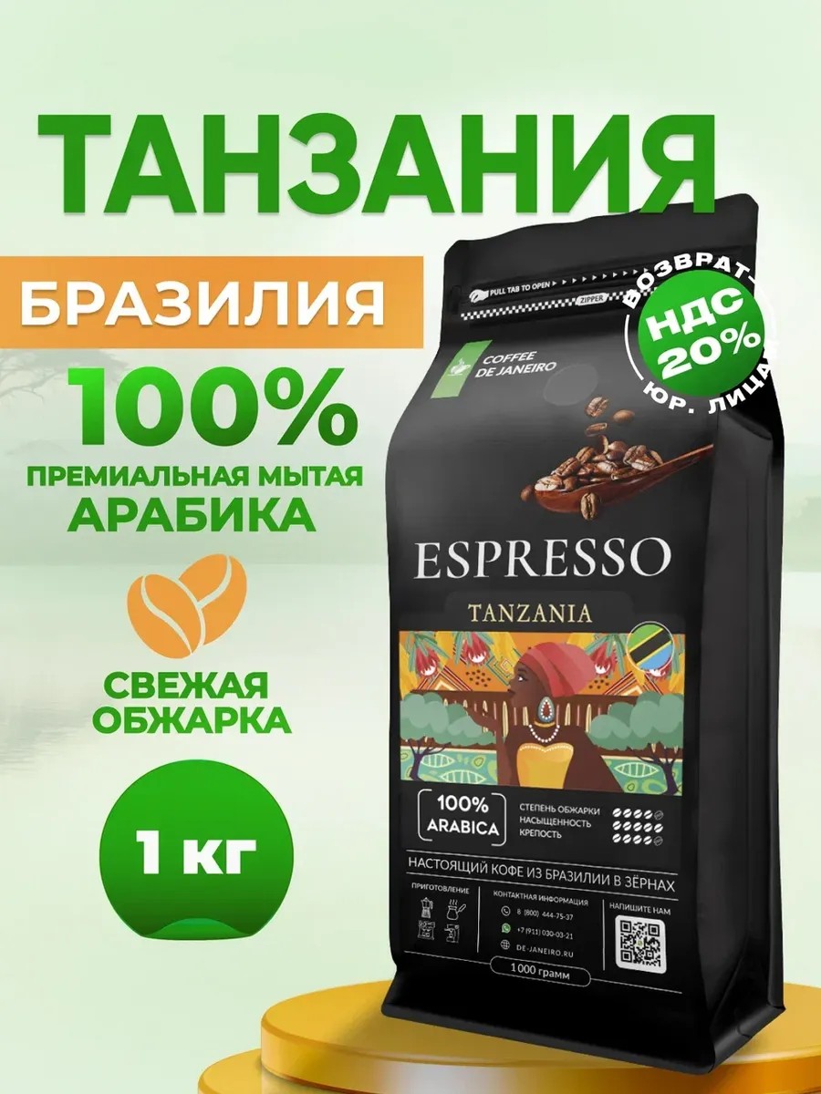 DE JANEIRO Кофе в зернах 1 кг 100% Арабика Танзания Бразилия