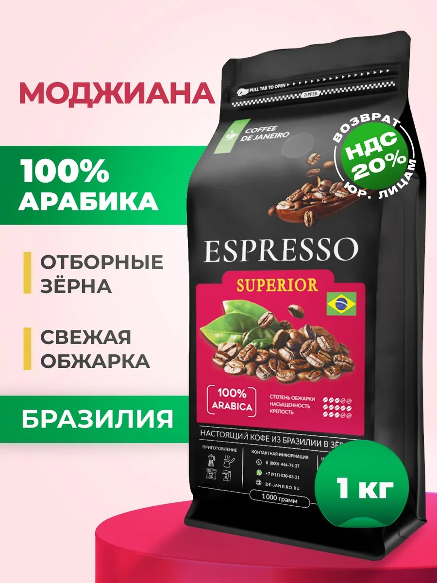 Свежеобжаренный кофе зерновой 1 кг ESPRESSO SUPERIOR (Эспрессо Супериор) – 100% арабика региона Моджиана, одного из крупнейших производителей кофе в Бразилии. Кофе из этого региона традиционно отличается сбалансированным вкусом, приятным ароматом и густой пенкой. Идеален для заряда бодрости на весь день. Придётся по вкусу любителям настоящего бразильского кофе.