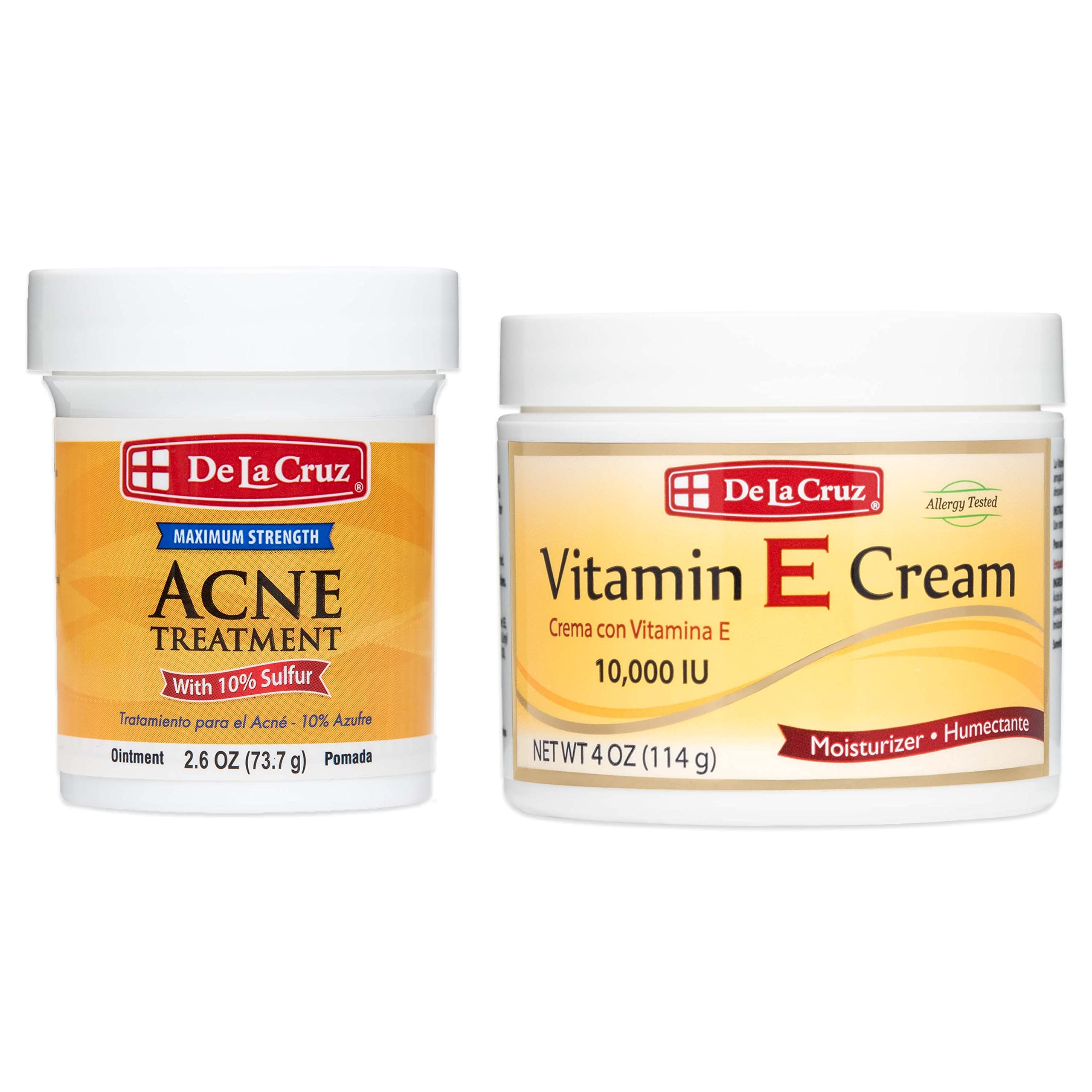 De La Cruz 10% Sulfur Ointment and Vitamin E Cream Bundle - For Face and Body - Made in USA