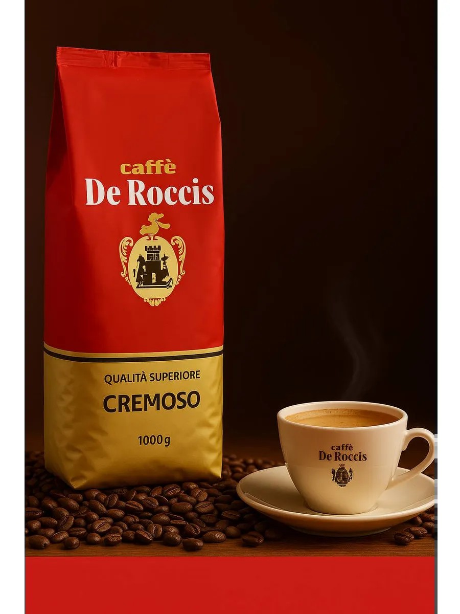 De Roccis Cremoso Qualità Rossa coffee is a rich and aromatic blend of high-quality Arabica and Robusta beans, created specifically for lovers of strong, creamy espresso.